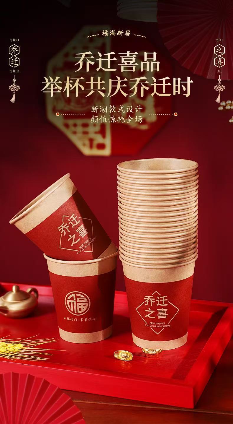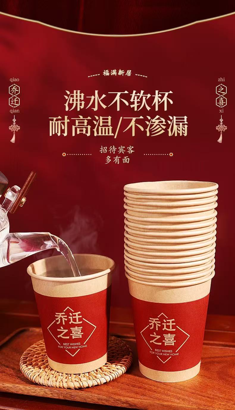 집들이 일회용 종이컵, 새 집으로 이동 용품 두껍고 경화 된 가족 연회 컵스토어 가기