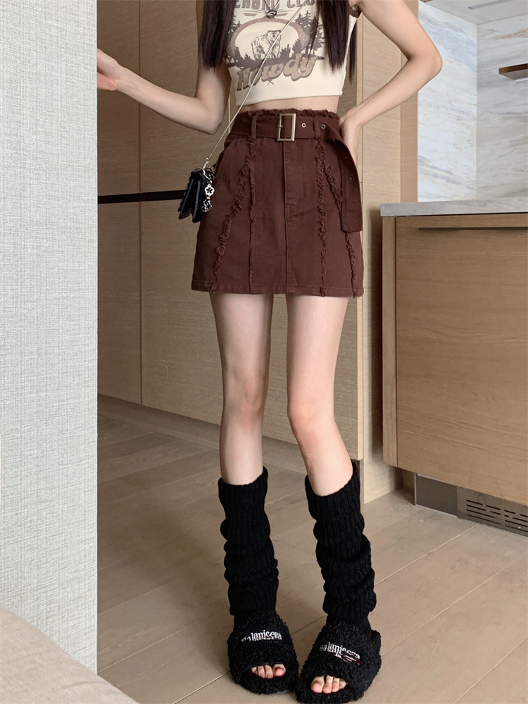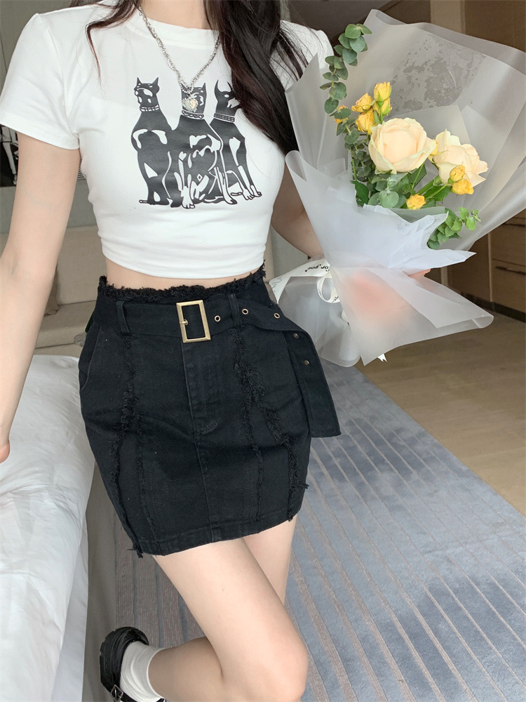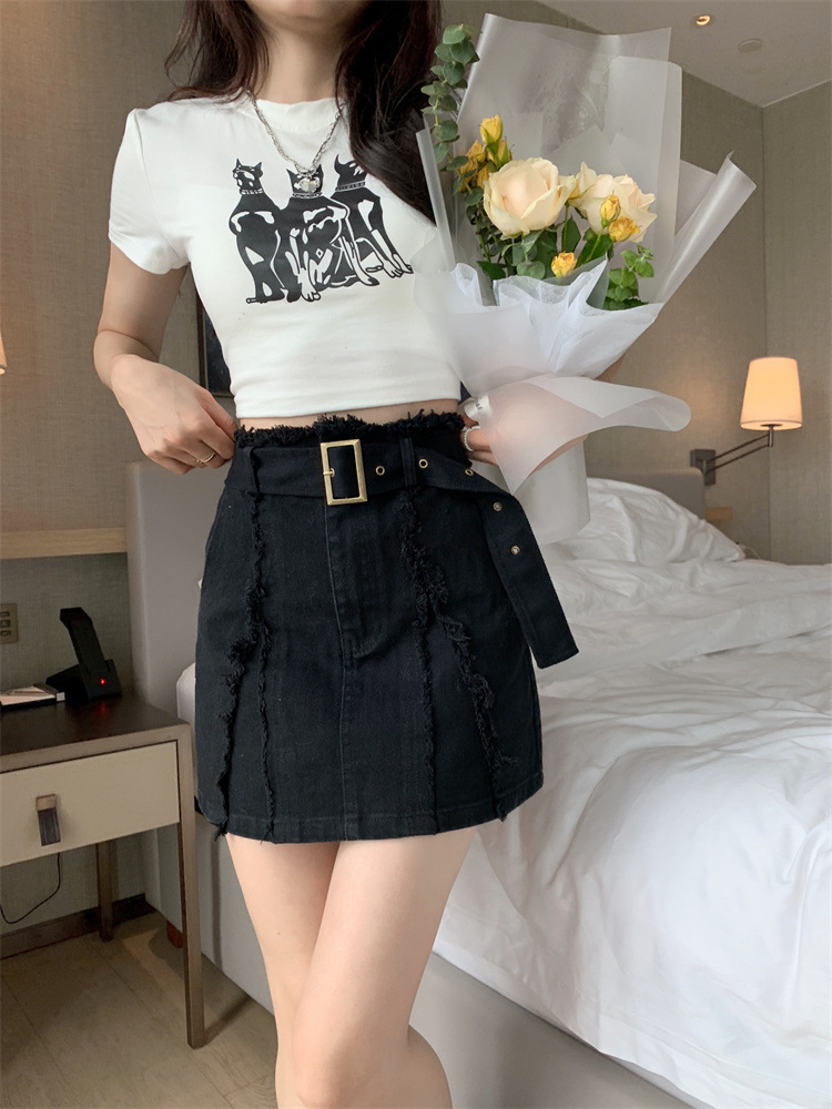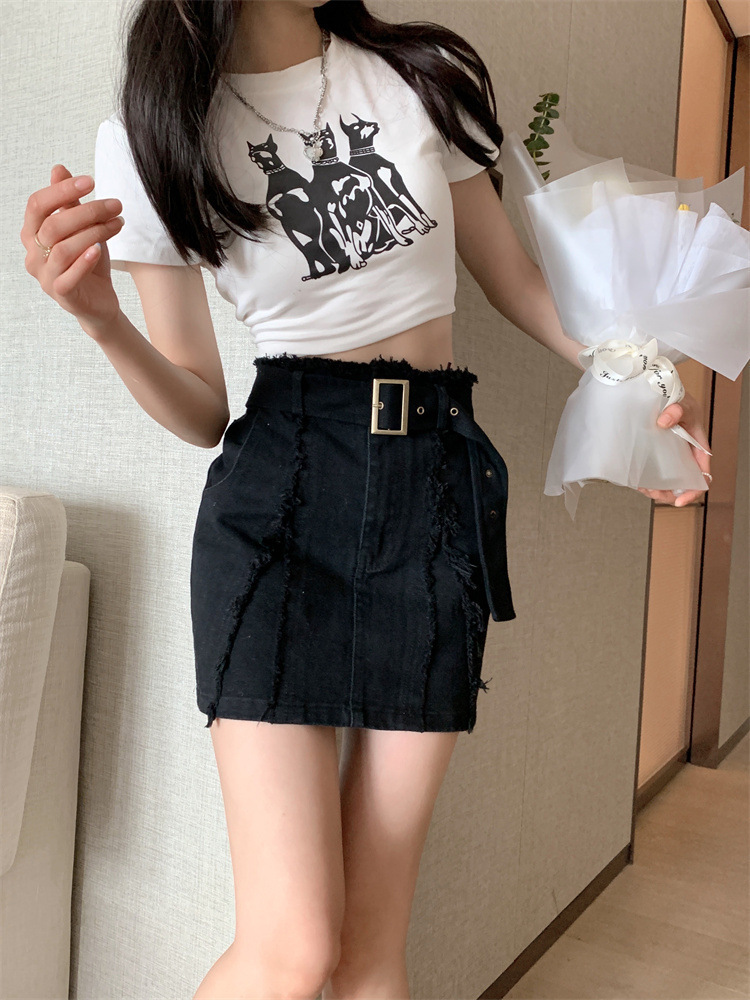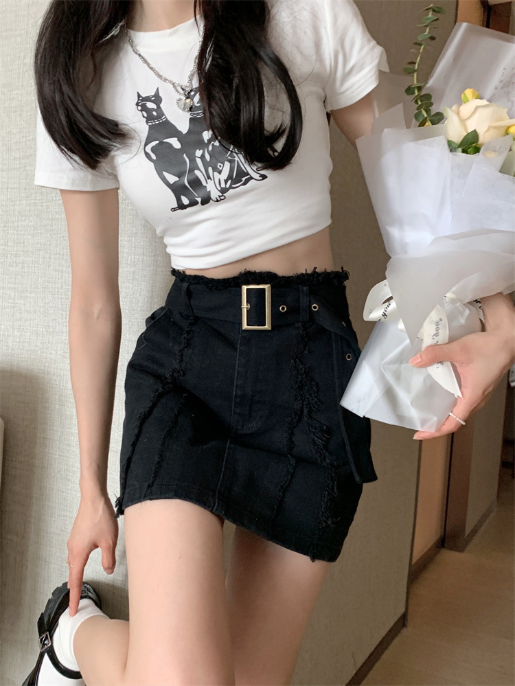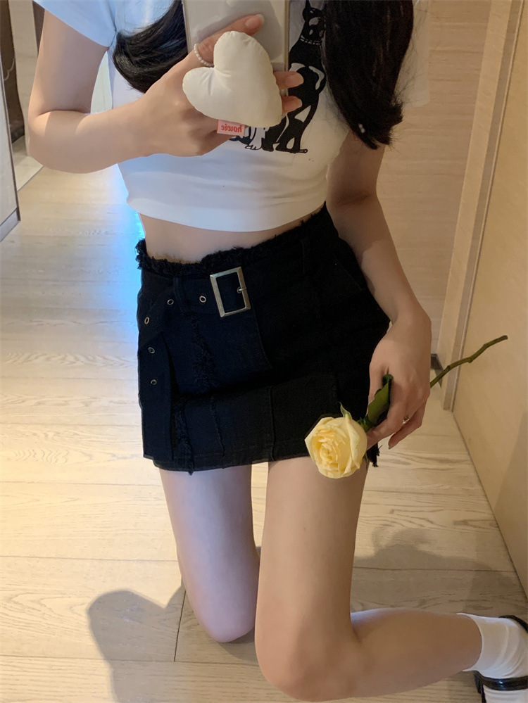 아메리칸 스타일 데님 스커트 여자 2024 여름 새로운 스타일 뜨거운 소녀 높은 허리 블랙 A 라인 스커트 Ins 트렌디