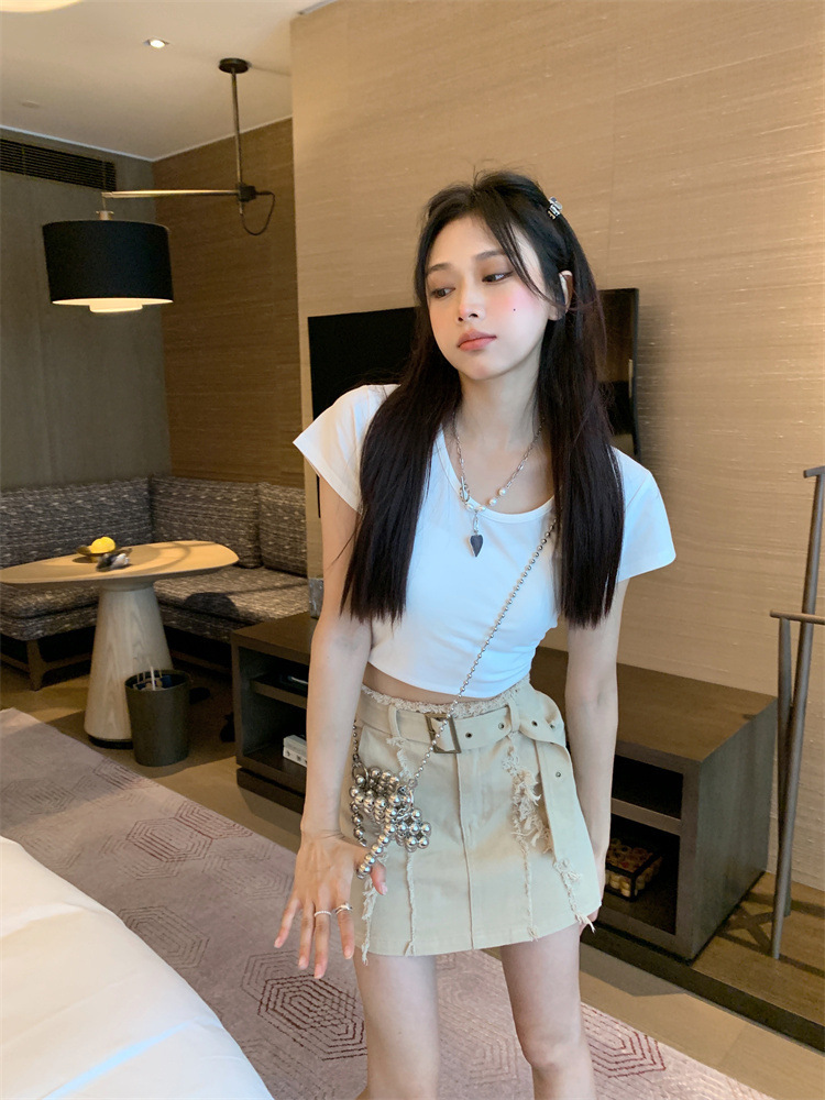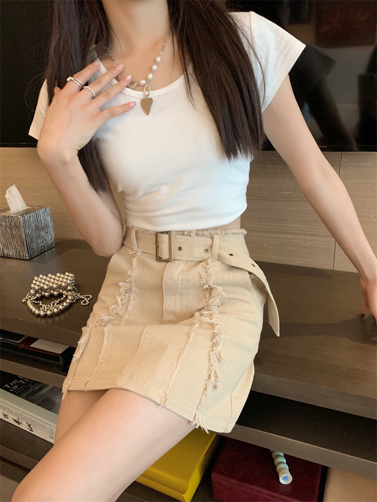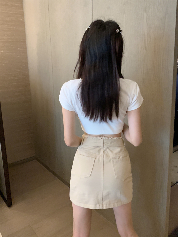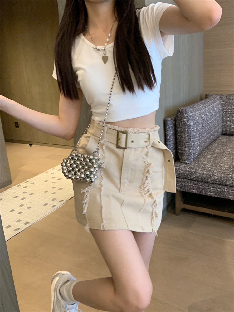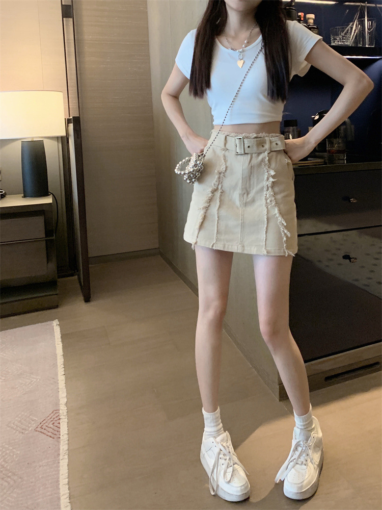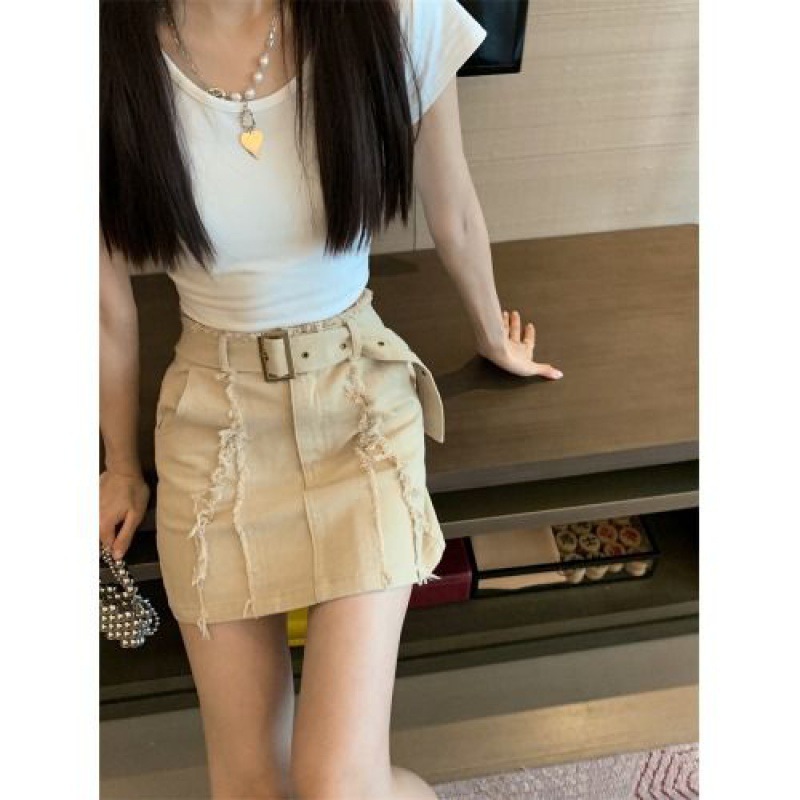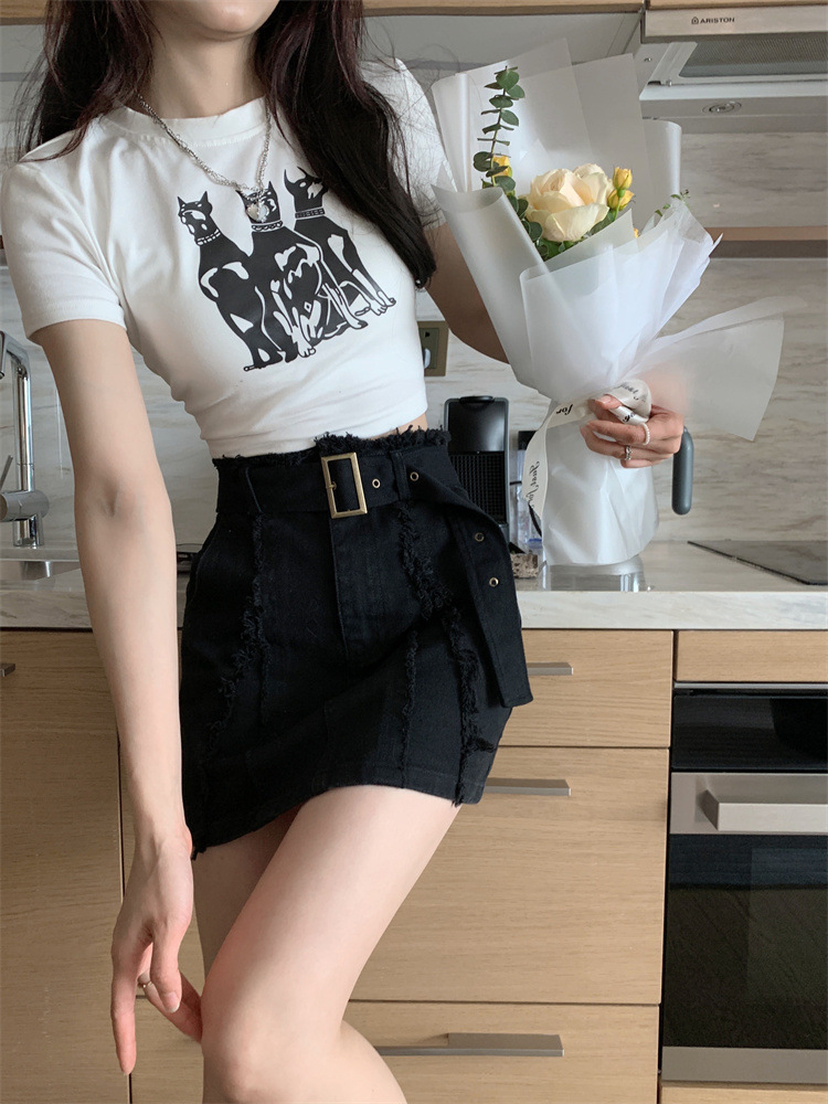 아메리칸 스타일 데님 스커트 여자 2024 여름 새로운 스타일 뜨거운 소녀 높은 허리 블랙 A 라인 스커트 Ins 트렌디