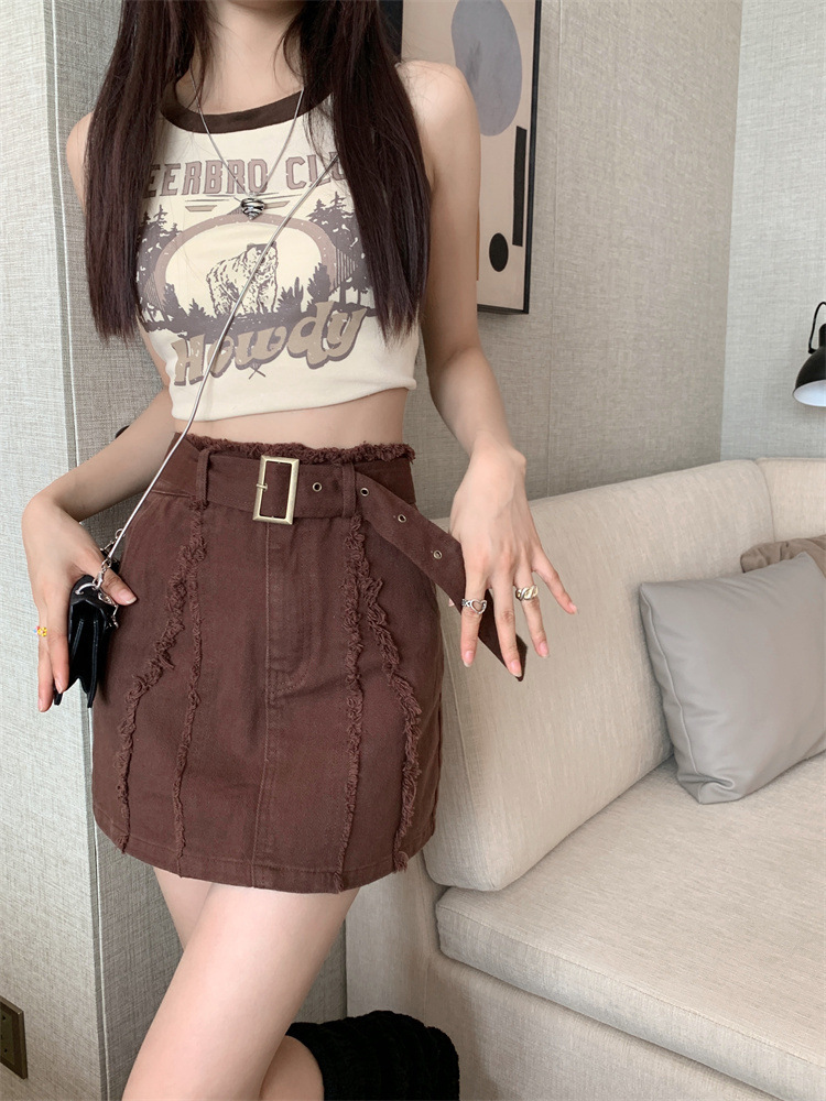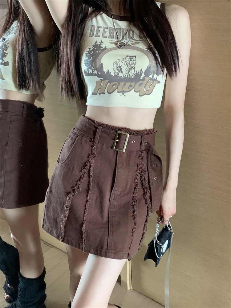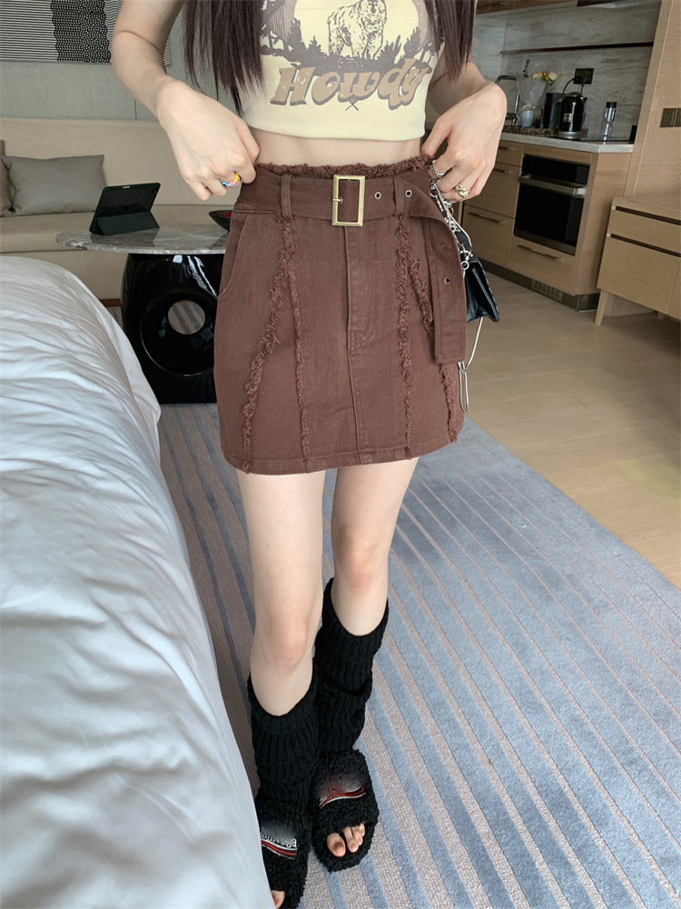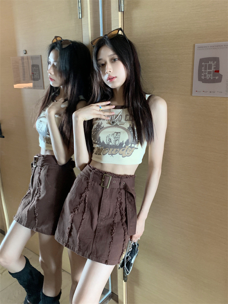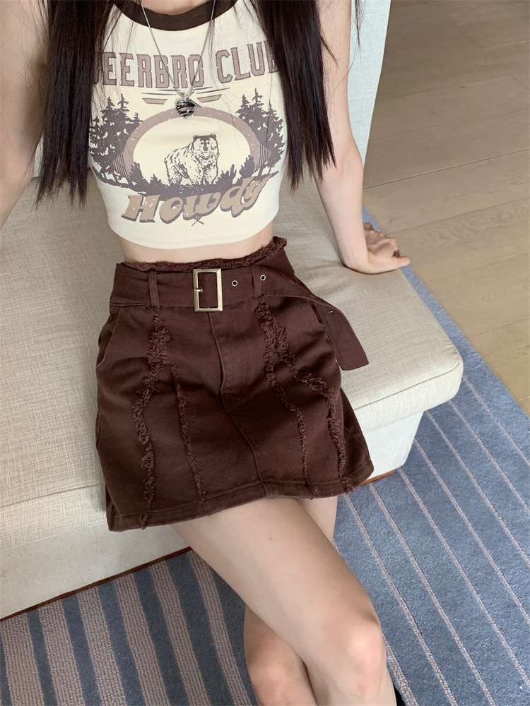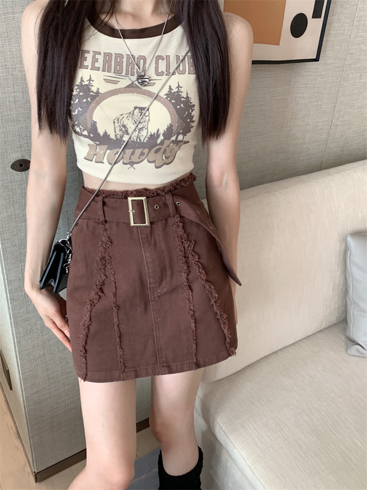 아메리칸 스타일 데님 스커트 여자 2024 여름 새로운 스타일 뜨거운 소녀 높은 허리 블랙 A 라인 스커트 Ins 트렌디스토어 가기