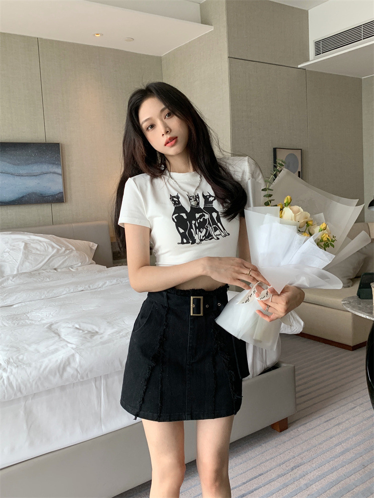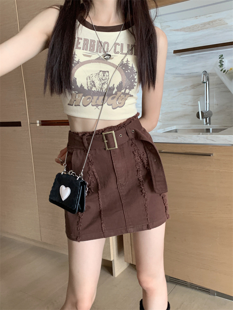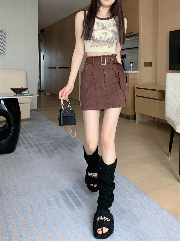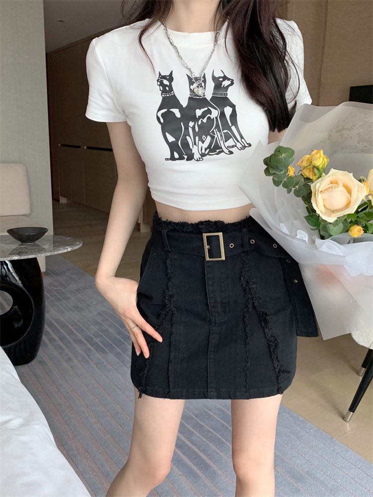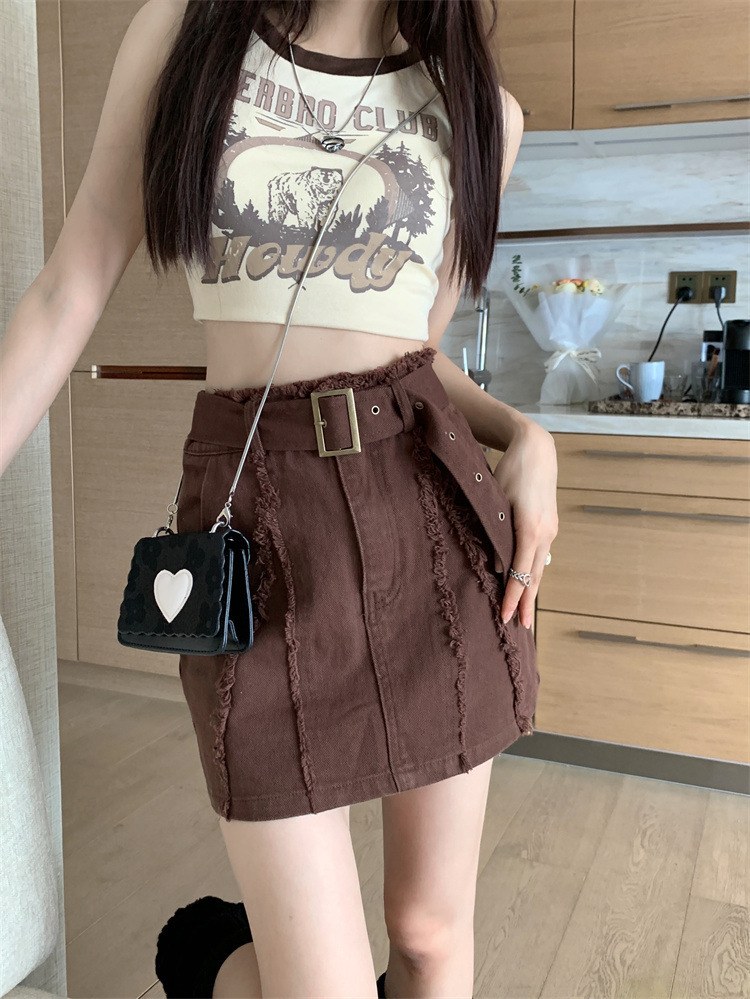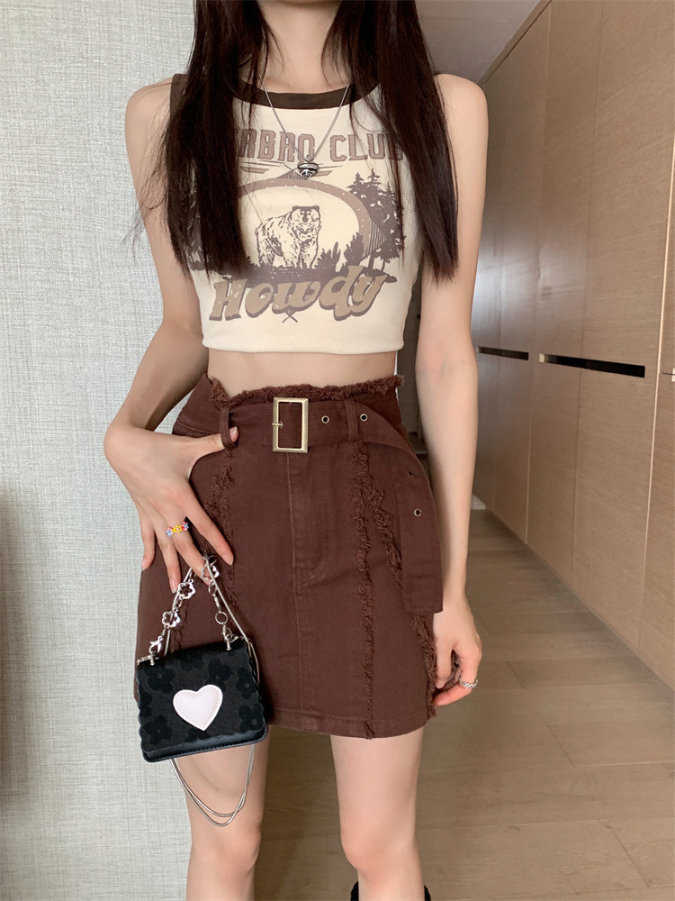 아메리칸 스타일 데님 스커트 여자 2024 여름 새로운 스타일 뜨거운 소녀 높은 허리 블랙 A 라인 스커트 Ins 트렌디스토어 가기