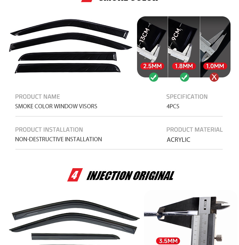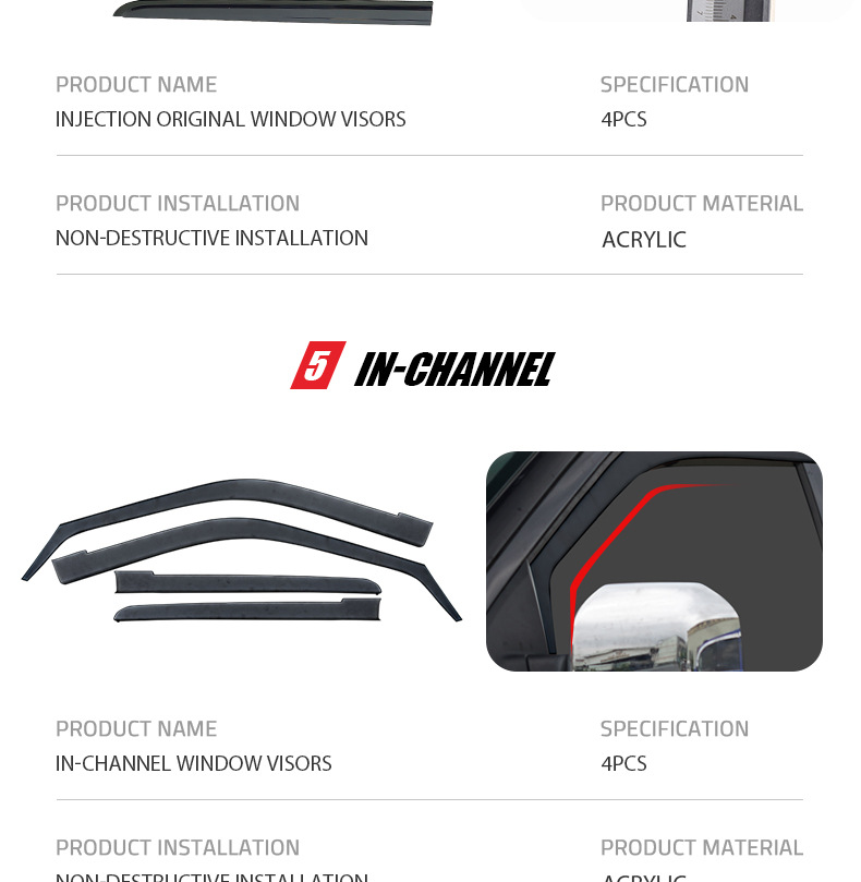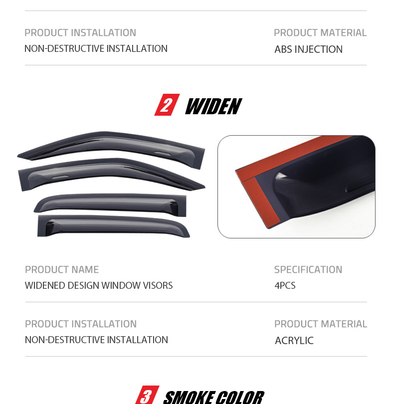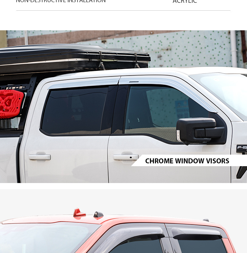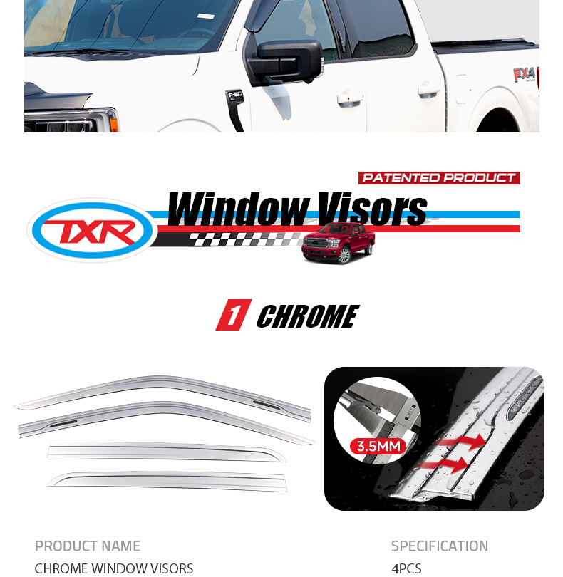 • F150/RAPTOR -2021-현재 모델용 특수 내장형 비 또는 빛 방패 4피스 팩