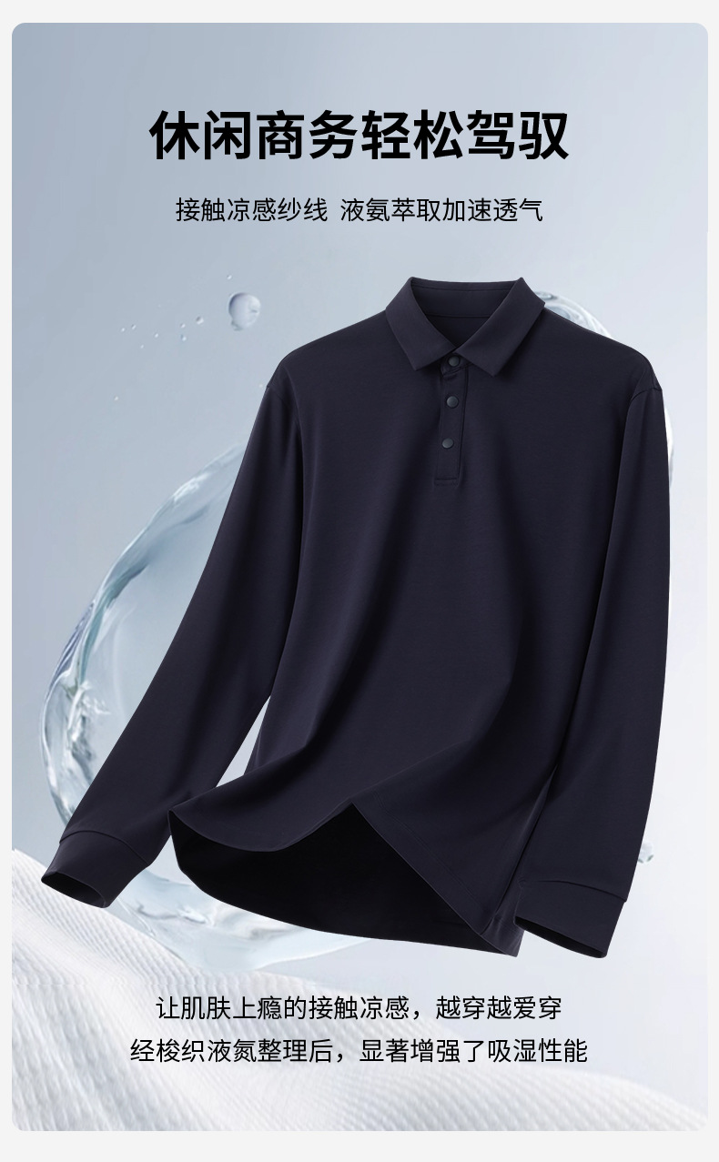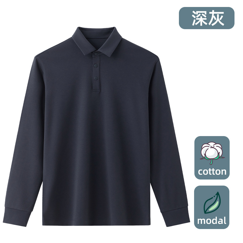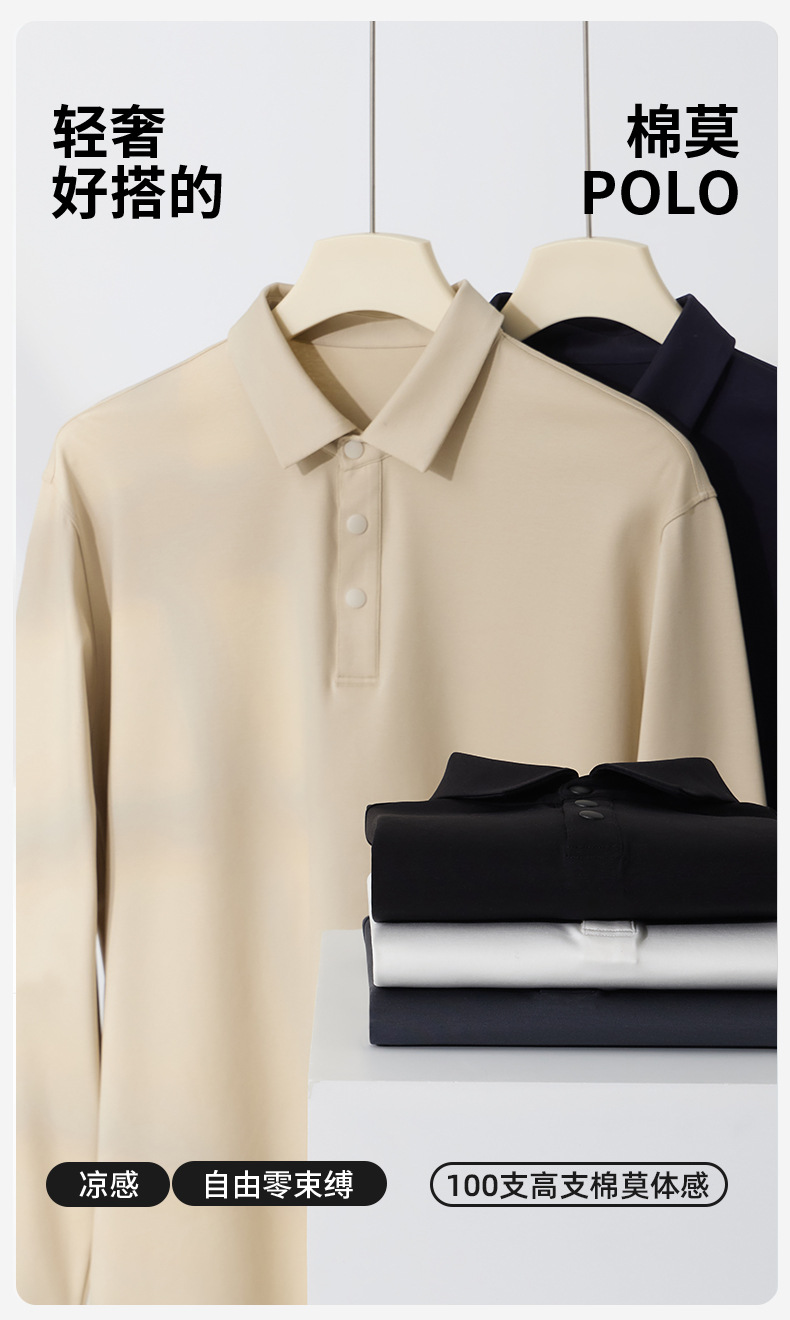 액체 암모니아 면 긴 소매 폴로 셔츠 봄과 가을 패션 비즈니스 캐주얼 올 매치 옷깃 모달 티셔츠 남성용 탑
