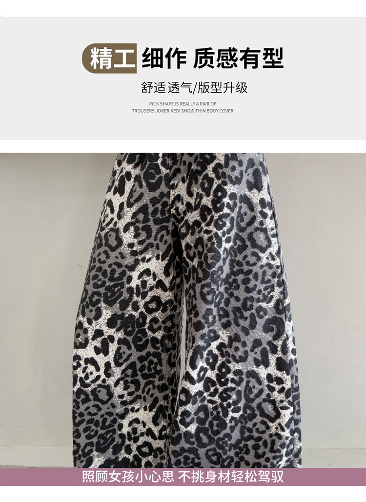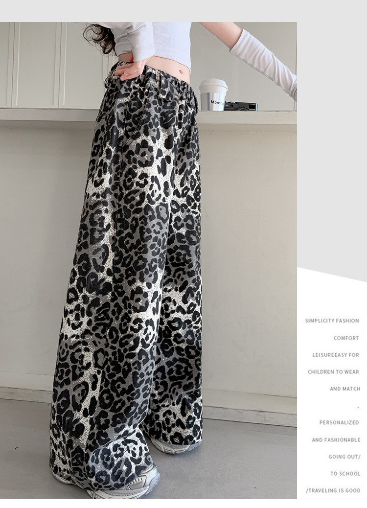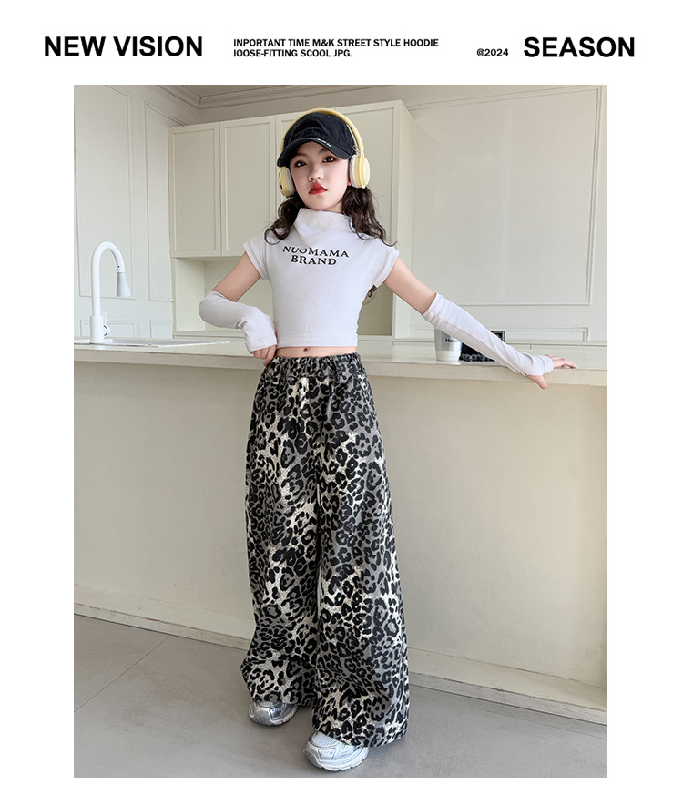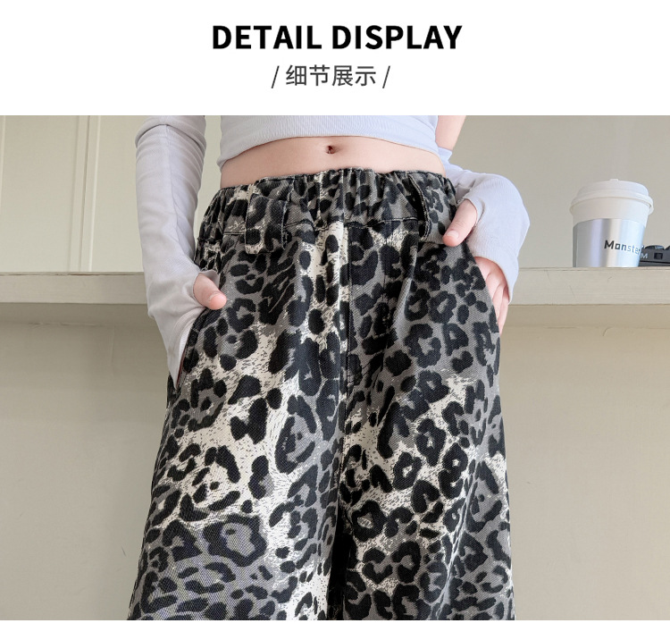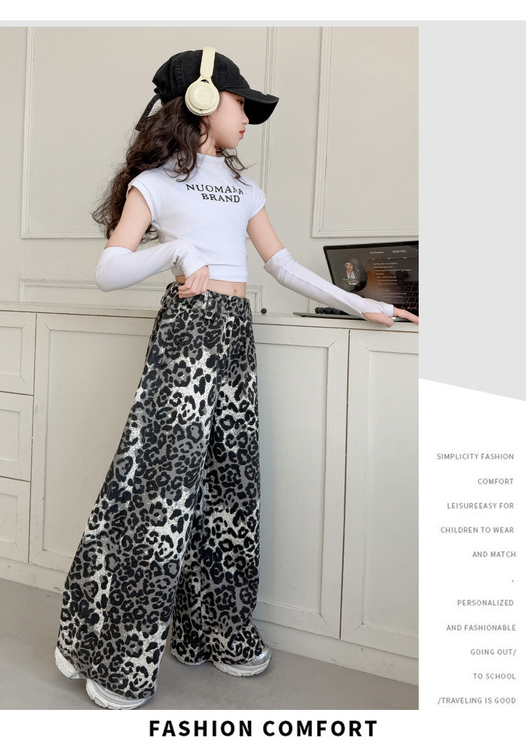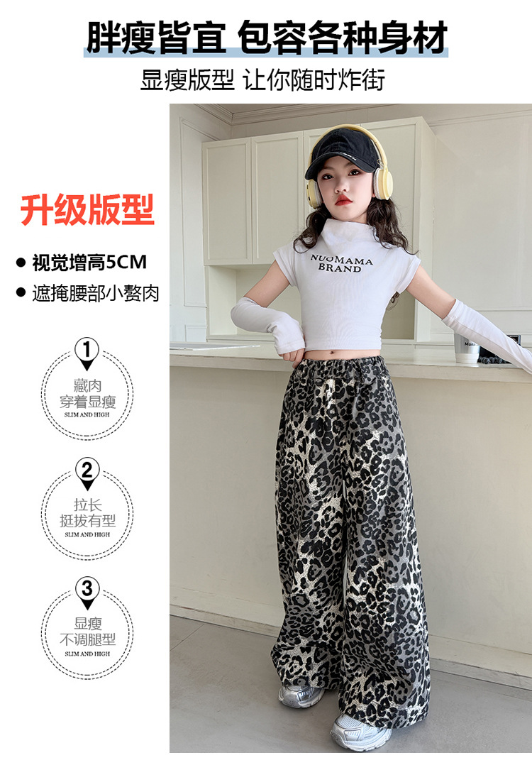 소녀의 봄과 가을 바지 2025 새로운 어린이 넓은 다리 바지 오픈 봄 서양식 유행 큰 어린이 레오파드 무늬 바지 슈퍼 아름다운스토어 가기