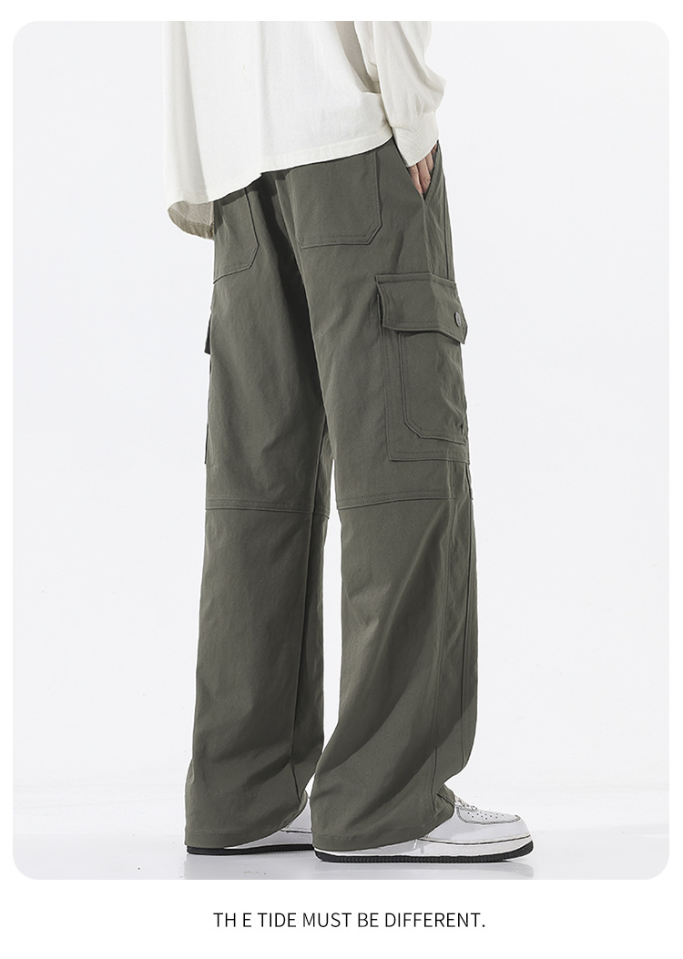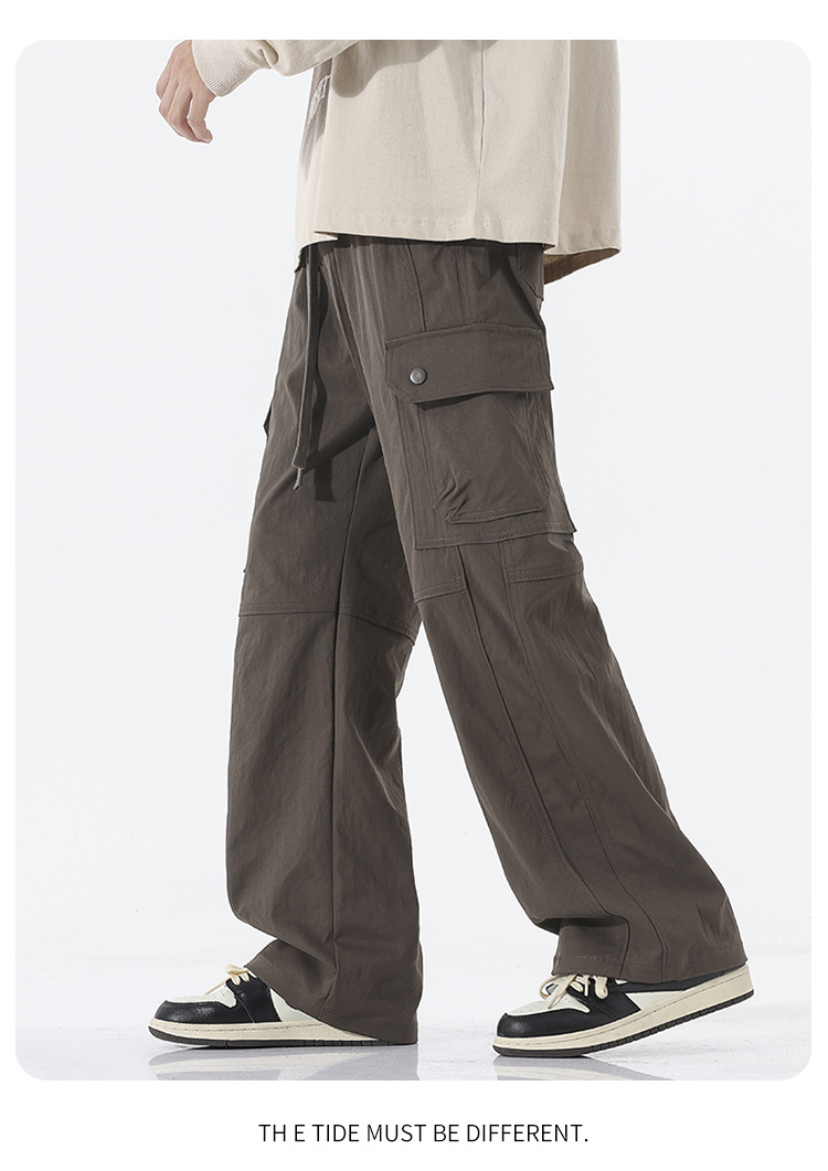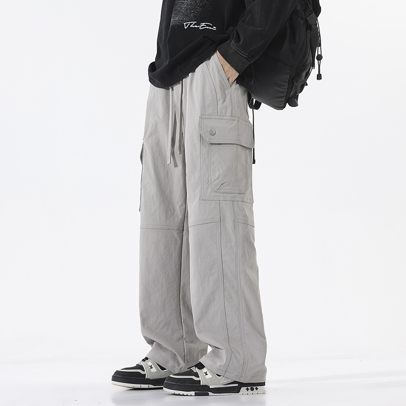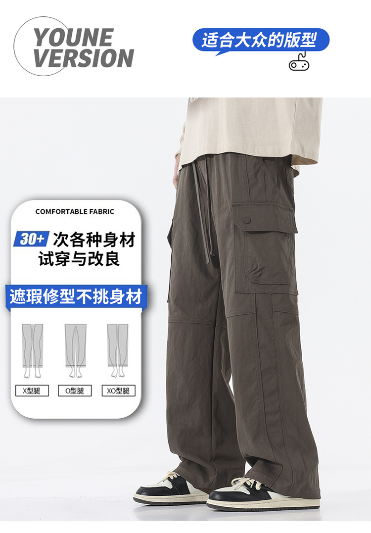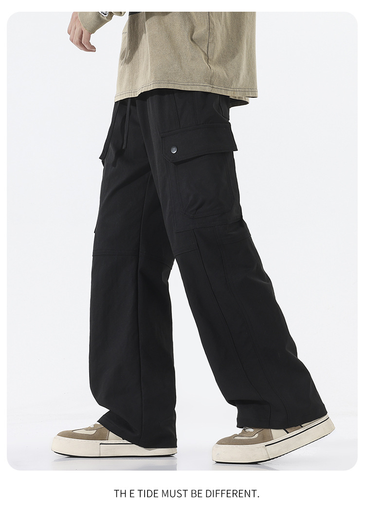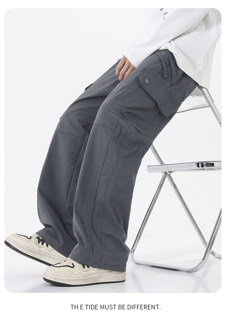 미국 스타일 중공업 야외 등반 등반 바지 남성 패션 하이 엔드 센스 느슨한 넓은 다리 캐주얼 올 매치 크록 바지
