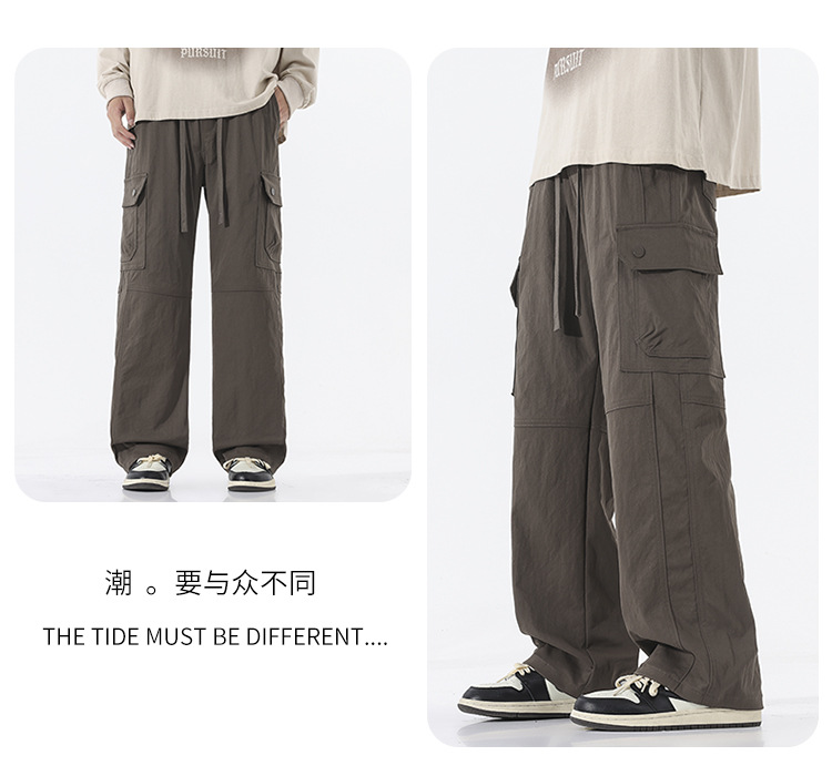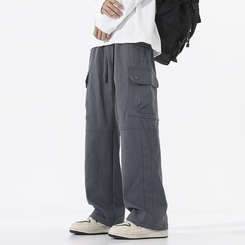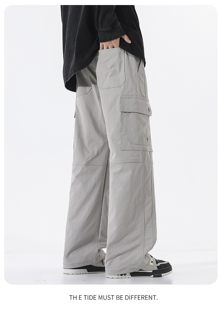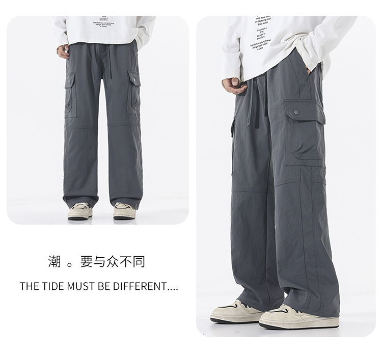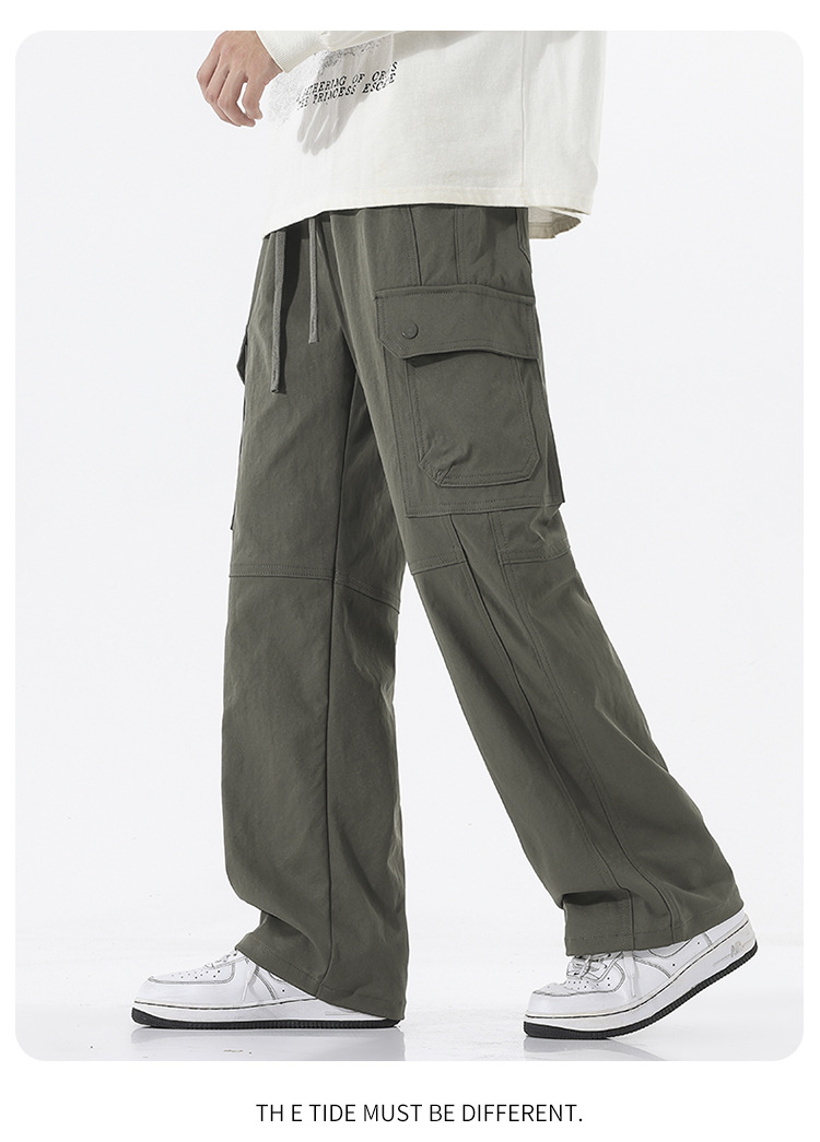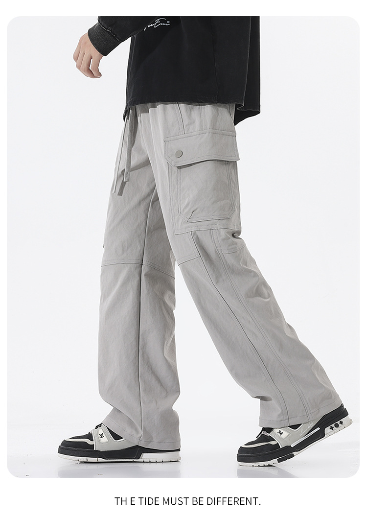 미국 스타일 중공업 야외 등반 등반 바지 남성 패션 하이 엔드 센스 느슨한 넓은 다리 캐주얼 올 매치 크록 바지
