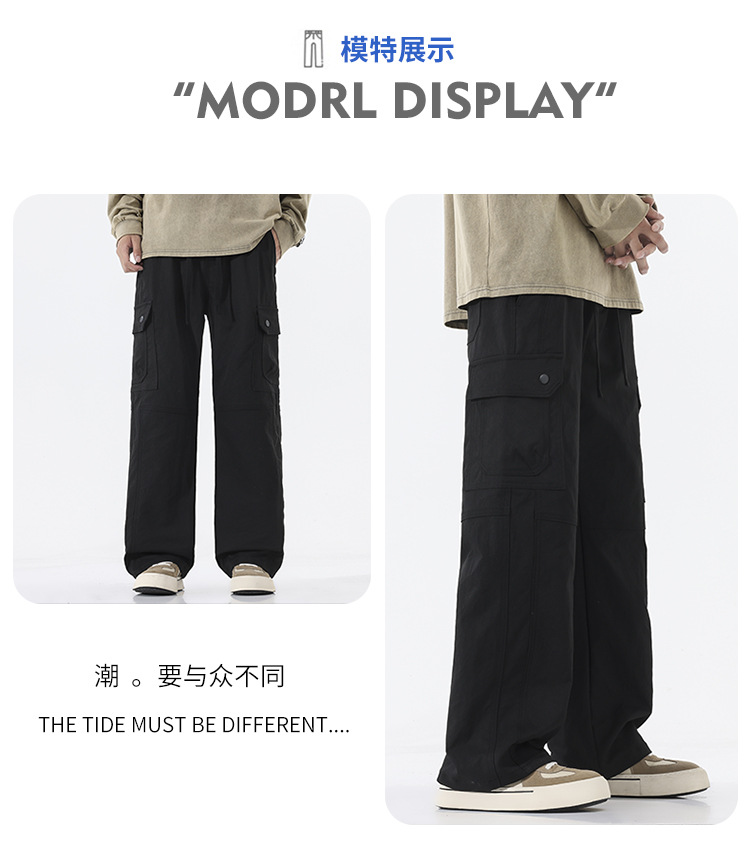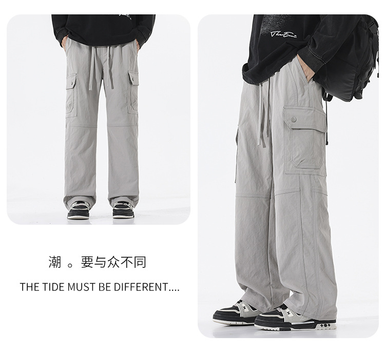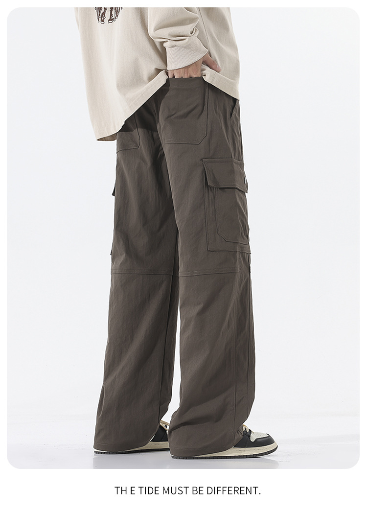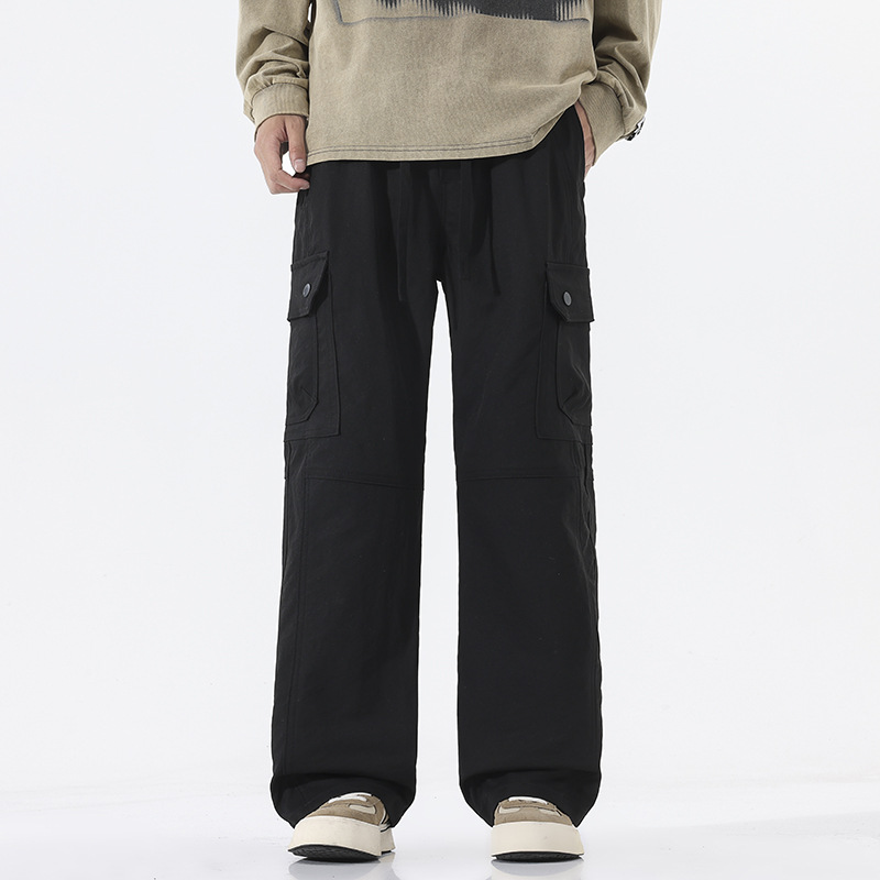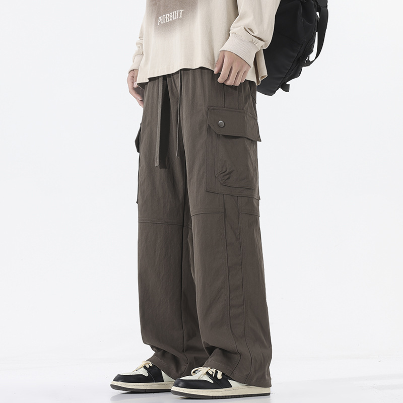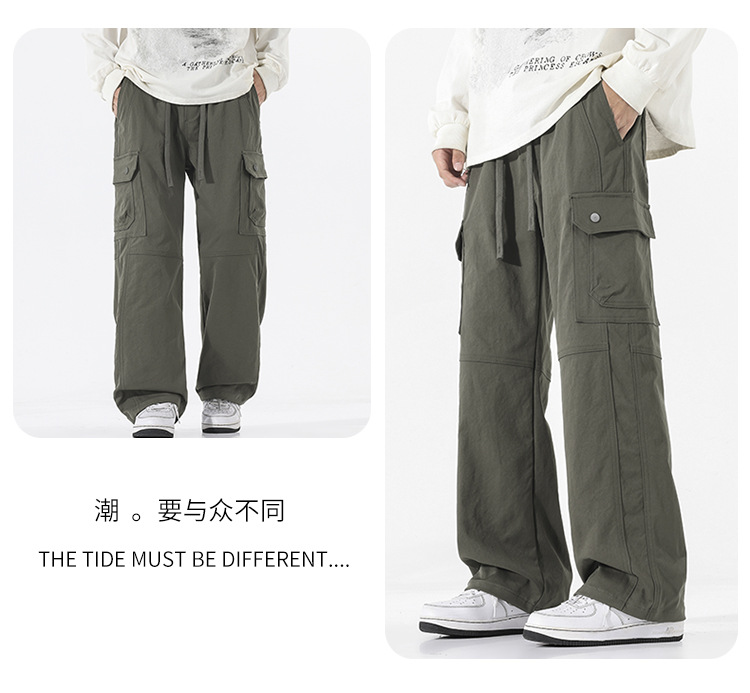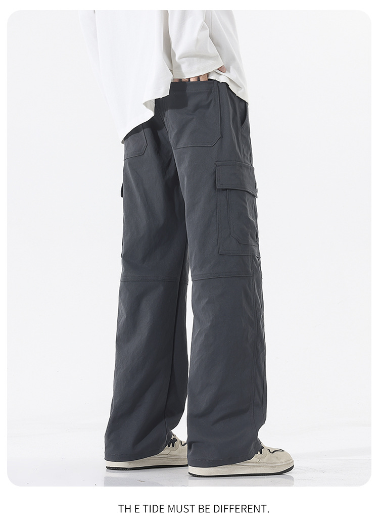 미국 스타일 중공업 야외 등반 등반 바지 남성 패션 하이 엔드 센스 느슨한 넓은 다리 캐주얼 올 매치 크록 바지