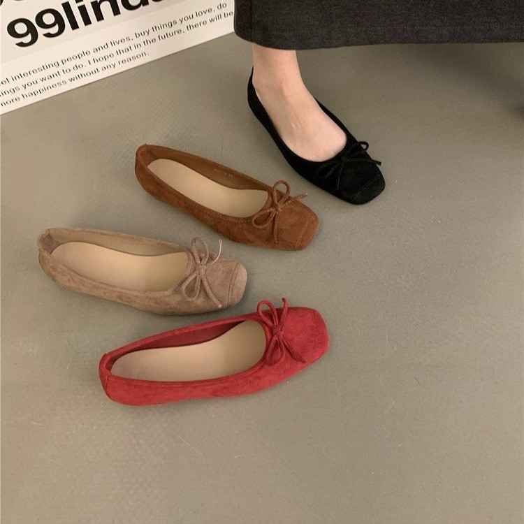 2025 봄 신간 적외선 스웨이드 라운드 발가락 신발 여성 한국식 활 플랫 슬립 온 Doudou 여성용 신발스토어 가기