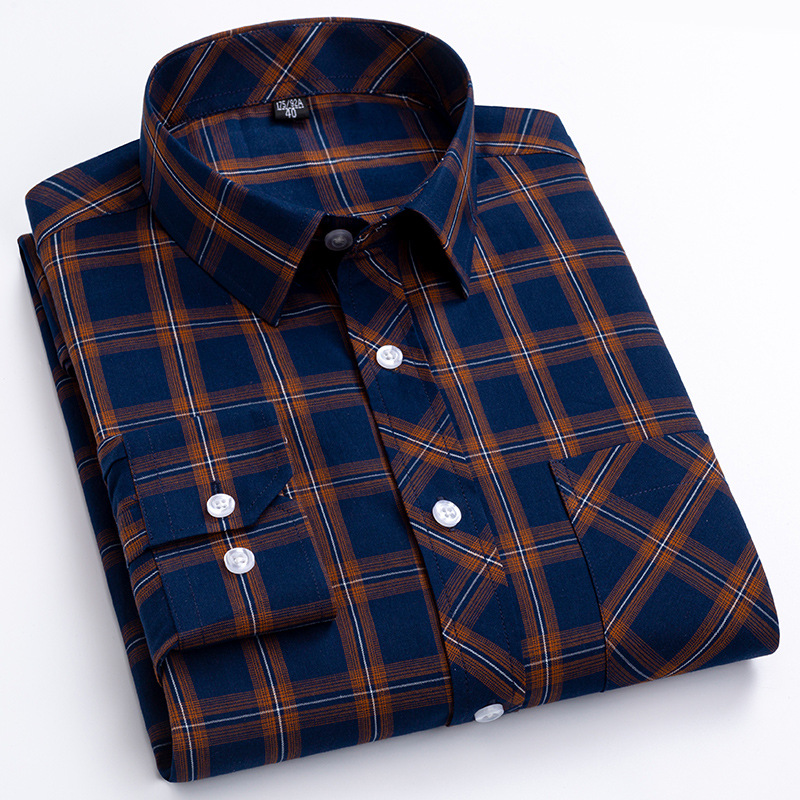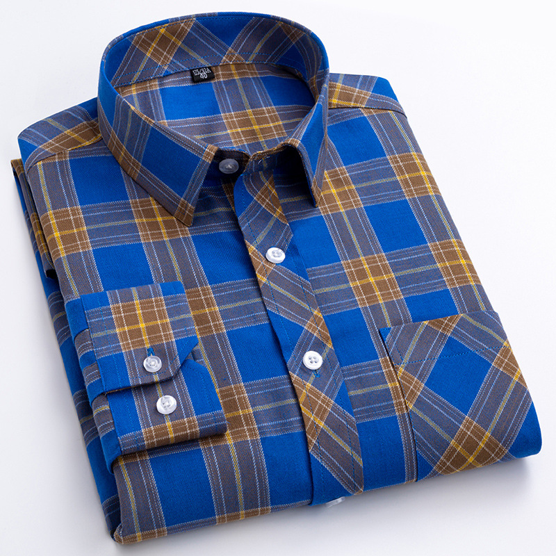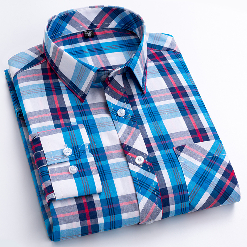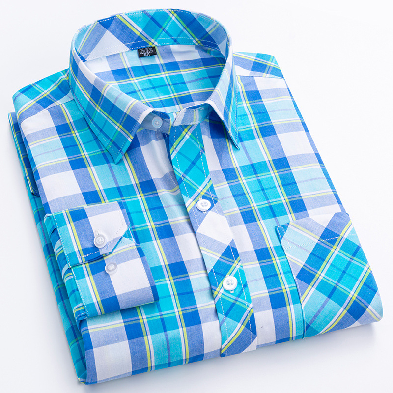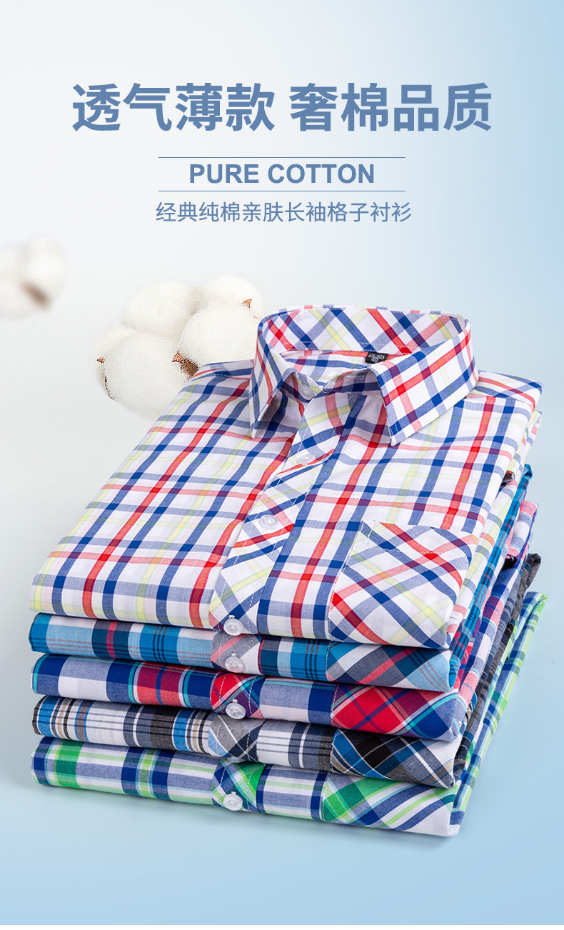 플러스 사이즈 격자 무늬 셔츠 남성용 긴팔 순면 얇은 명암 격자 무늬 영국 스타일 남성용 캐주얼 크로스 보더 남성용스토어 가기