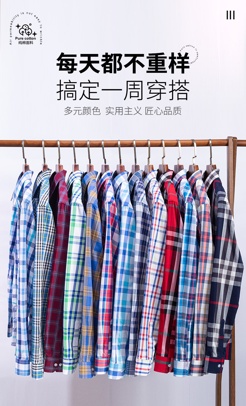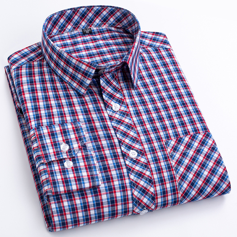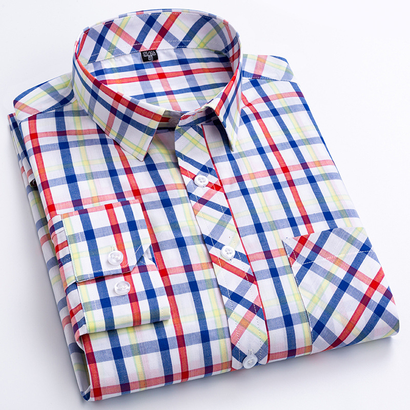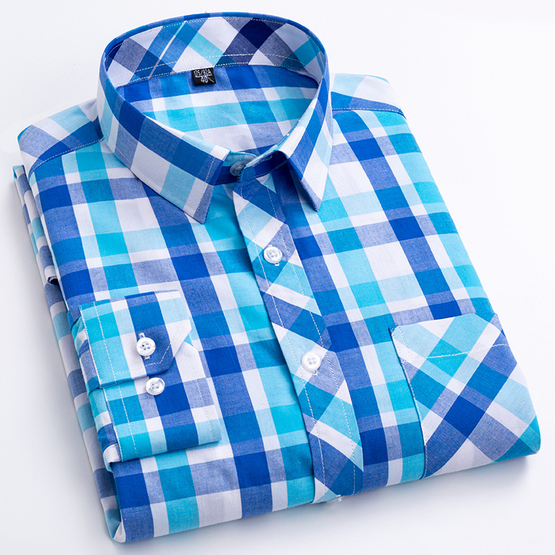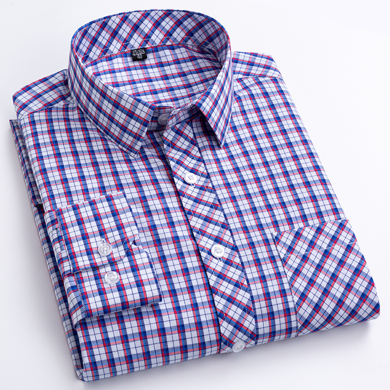 플러스 사이즈 격자 무늬 셔츠 남성용 긴팔 순면 얇은 명암 격자 무늬 영국 스타일 남성용 캐주얼 크로스 보더 남성용스토어 가기