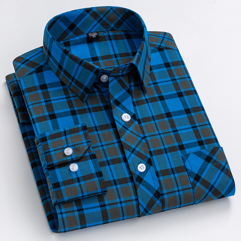 플러스 사이즈 격자 무늬 셔츠 남성용 긴팔 순면 얇은 명암 격자 무늬 영국 스타일 남성용 캐주얼 크로스 보더 남성용