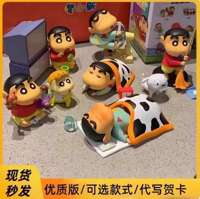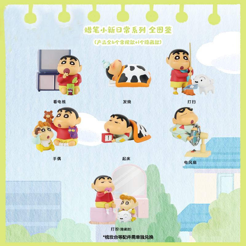 짱구는 못말려 일상 시리즈 장난감 인기 블라인드 박스 피규어 선풍기 어린이 인형 펜던트 장난감스토어 가기