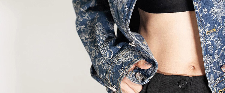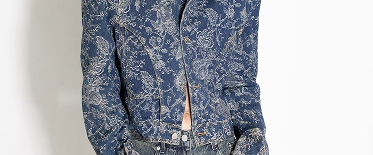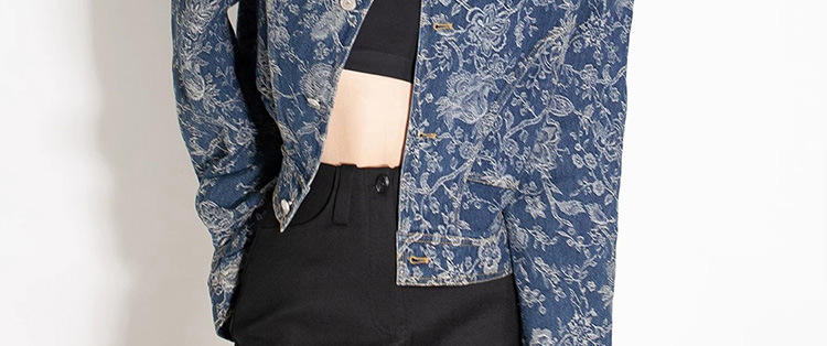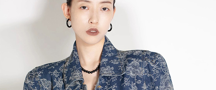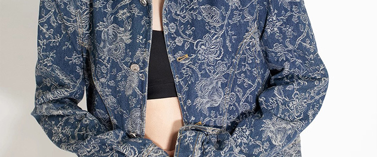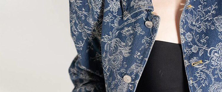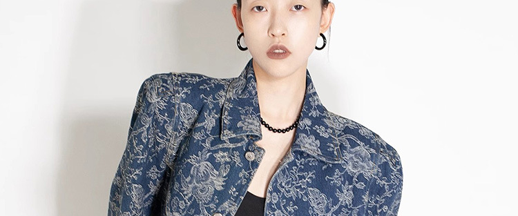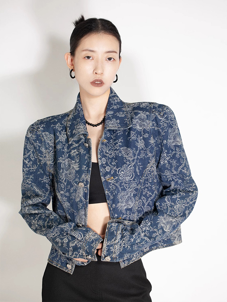 파란색과 흰색 도자기 자수 데님 코트 여성 2025 봄과 여름 새로운 틈새 디자인 복고풍 인쇄 통근 느슨한 재킷스토어 가기