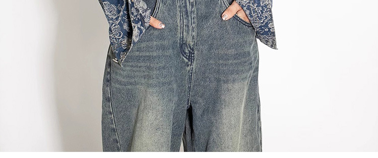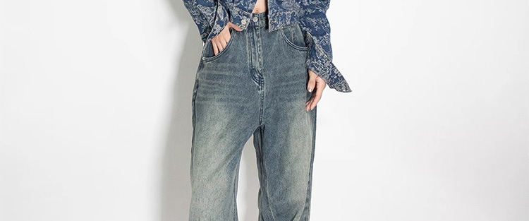 파란색과 흰색 도자기 자수 데님 코트 여성 2025 봄과 여름 새로운 틈새 디자인 복고풍 인쇄 통근 느슨한 재킷