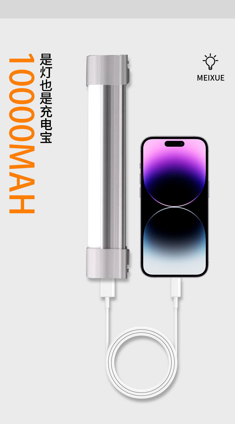 캠핑 스톨 다기능 강력한 자기 램프 충전 비상 램프 휴대 전화 충전 보라색 빛 감지 경화