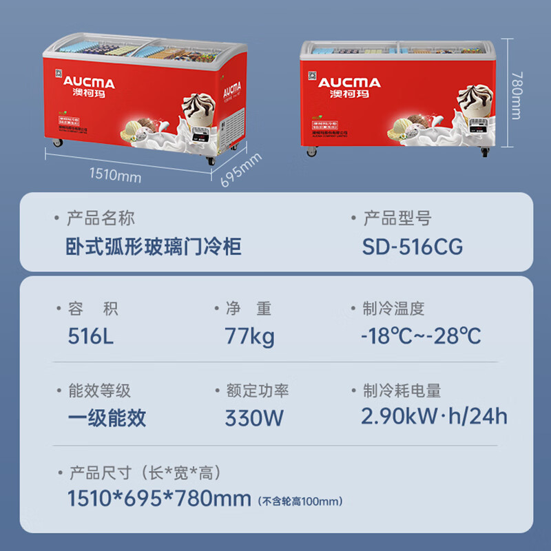 옥마 냉동고 디스플레이 캐비닛 상업용 소형 냉동고 평면 강화 유리 슬라이딩 도어 상업용 슈퍼 아이스 케이크 캐비닛스토어 가기