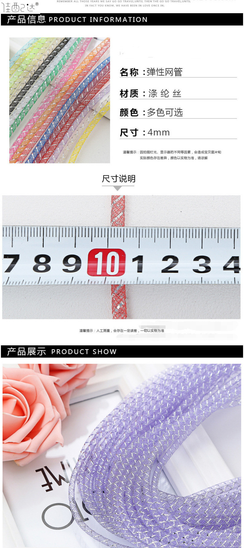 컬러 메쉬 튜브 4mm 탄성 라운드 튜브 수제 활 크리스마스 리본 액세서리 헤어 액세서리 머리 장식 꽃 꼰 로프 도매스토어 가기