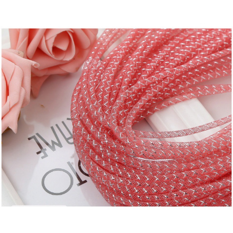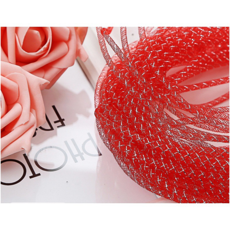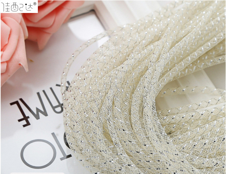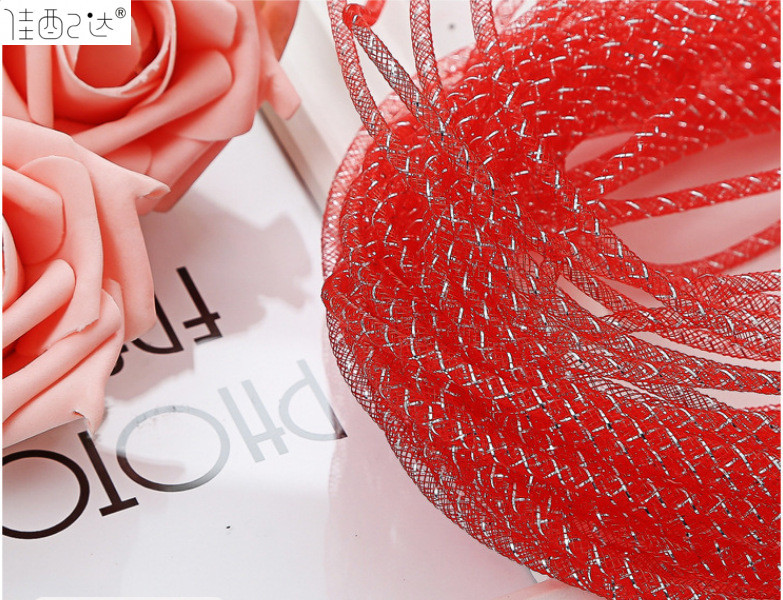 컬러 메쉬 튜브 4mm 탄성 라운드 튜브 수제 활 크리스마스 리본 액세서리 헤어 액세서리 머리 장식 꽃 꼰 로프 도매