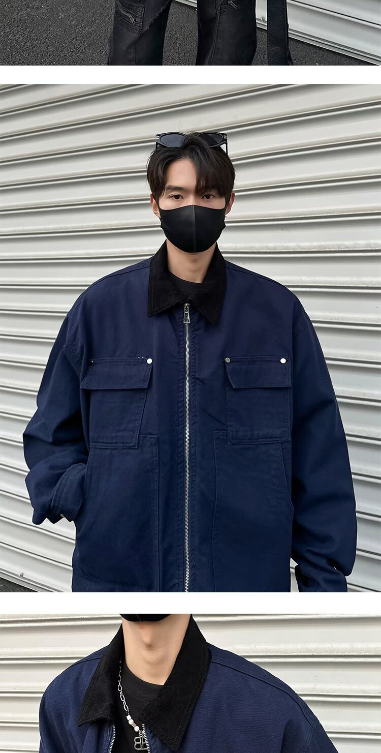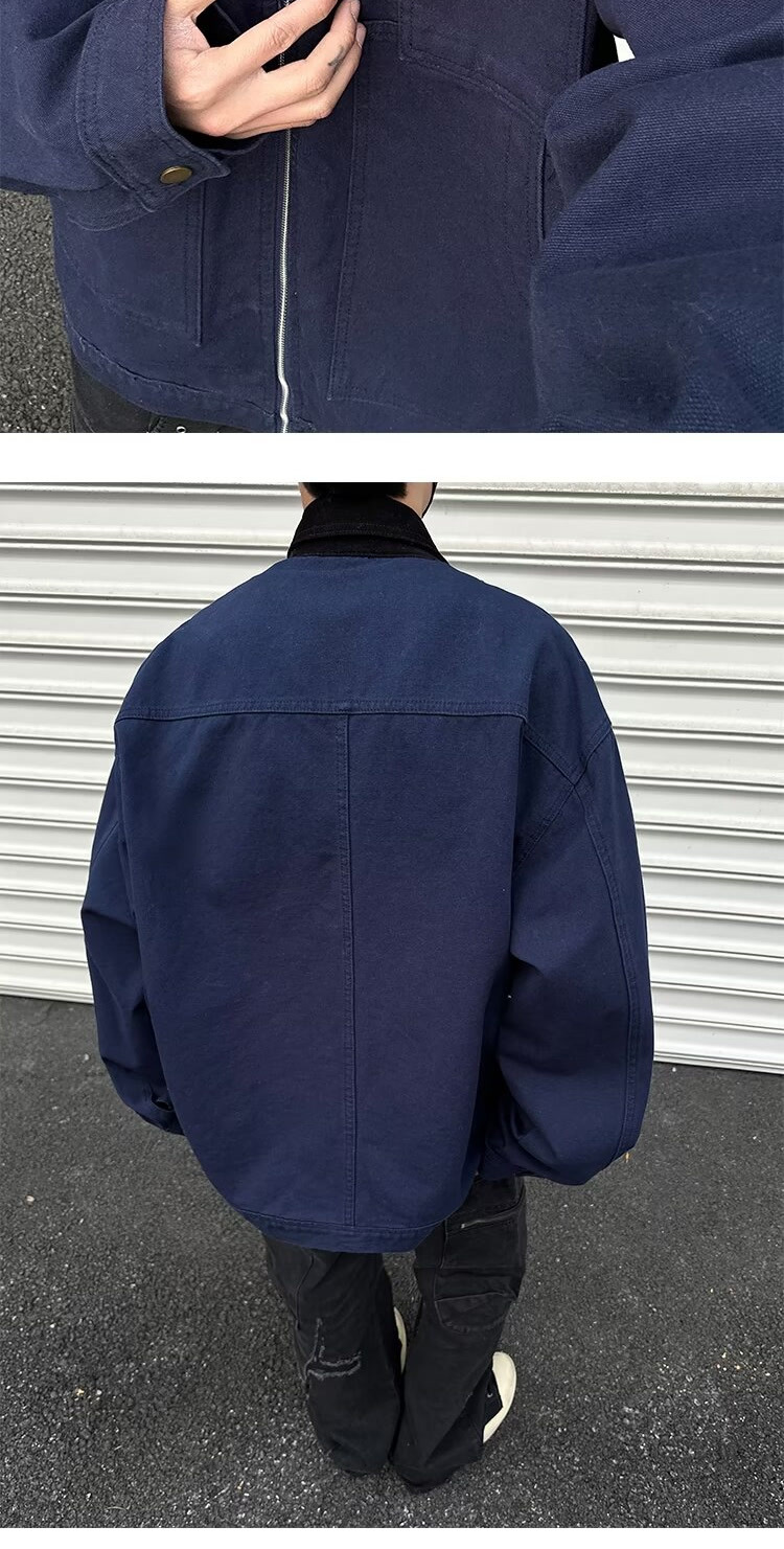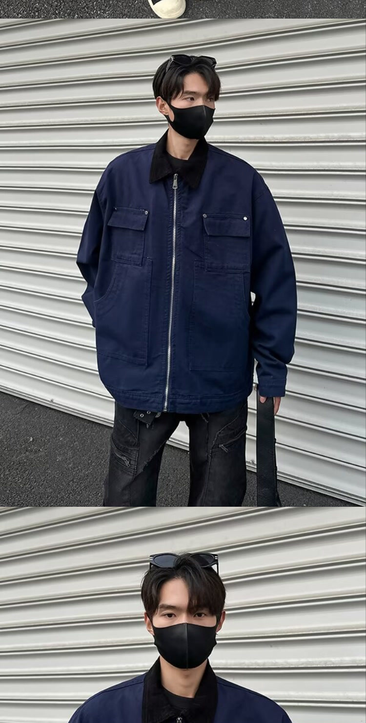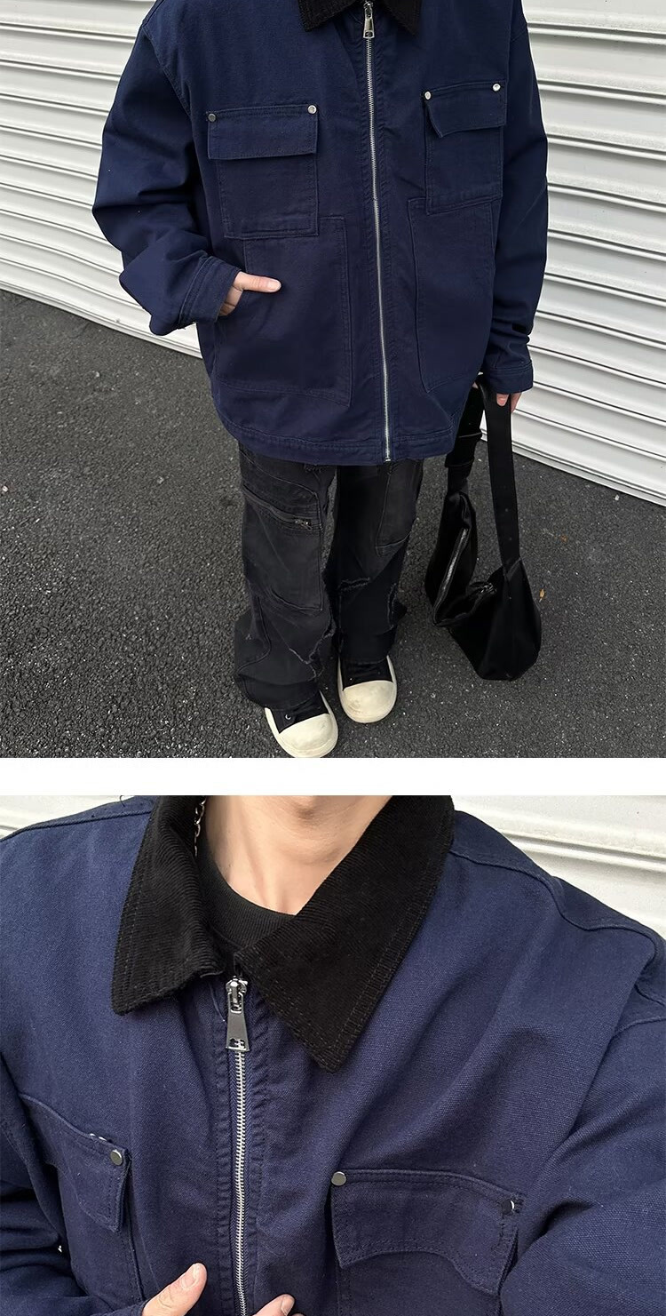 옷깃 아우터 지퍼 봄과 가을 느슨한 십대 티베트어 블루 디트로이트 작업 재킷 남자의 가을과 겨울 유행 긴 소매