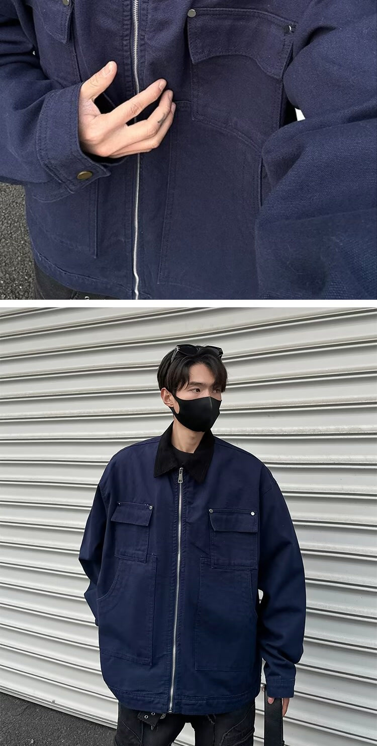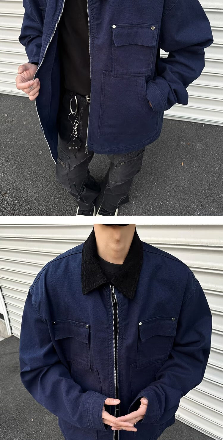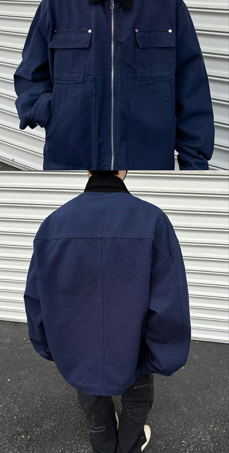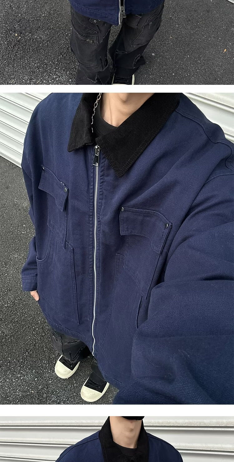 옷깃 아우터 지퍼 봄과 가을 느슨한 십대 티베트어 블루 디트로이트 작업 재킷 남자의 가을과 겨울 유행 긴 소매