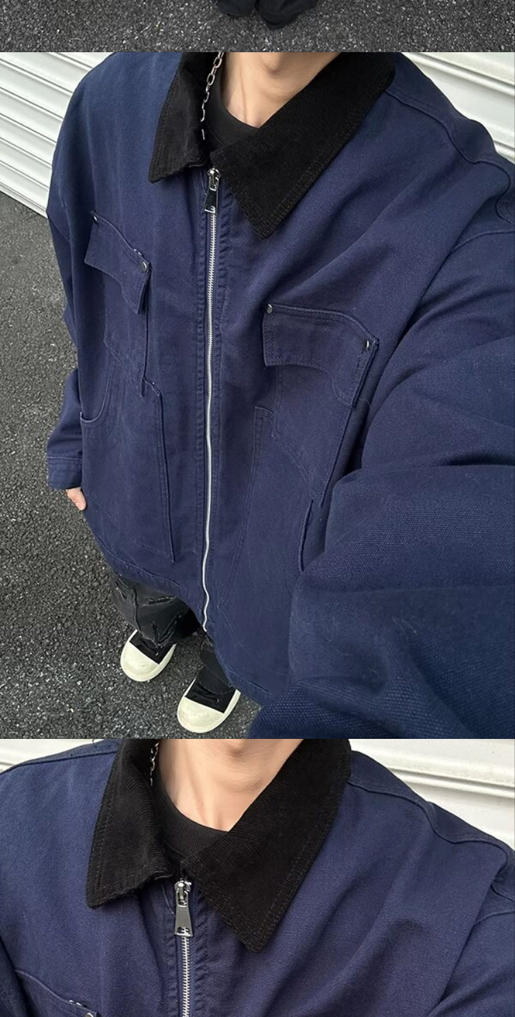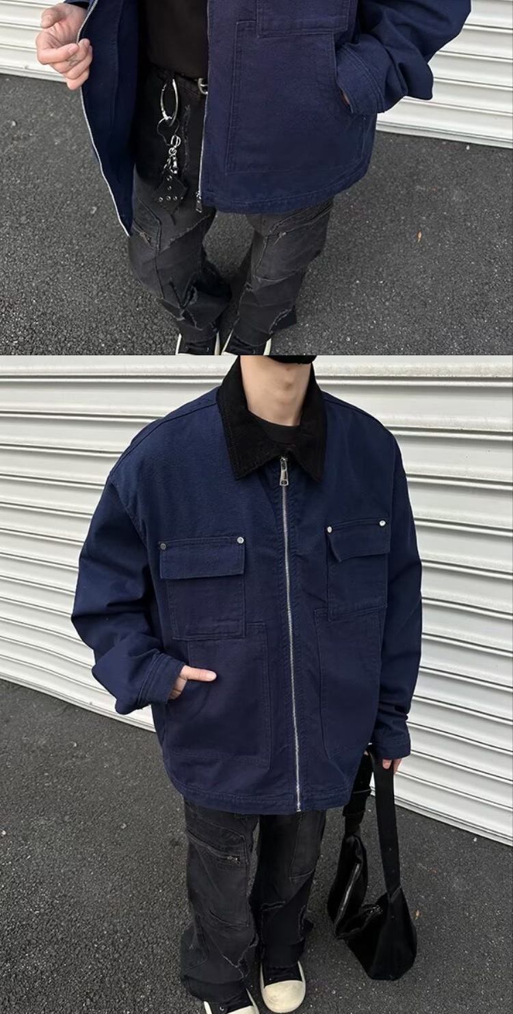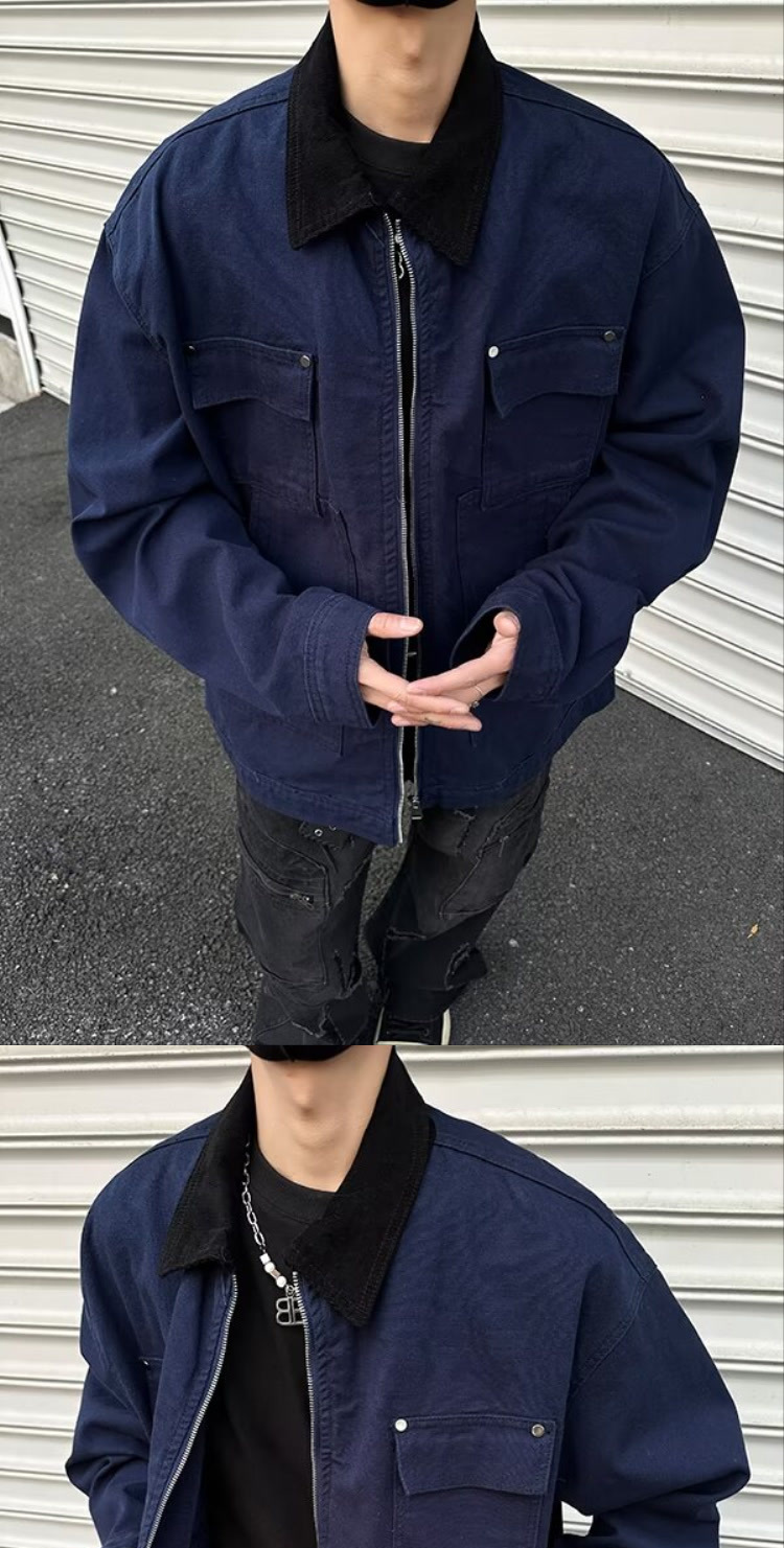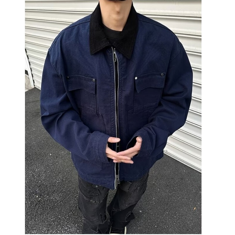 옷깃 아우터 지퍼 봄과 가을 느슨한 십대 티베트어 블루 디트로이트 작업 재킷 남자의 가을과 겨울 유행 긴 소매스토어 가기