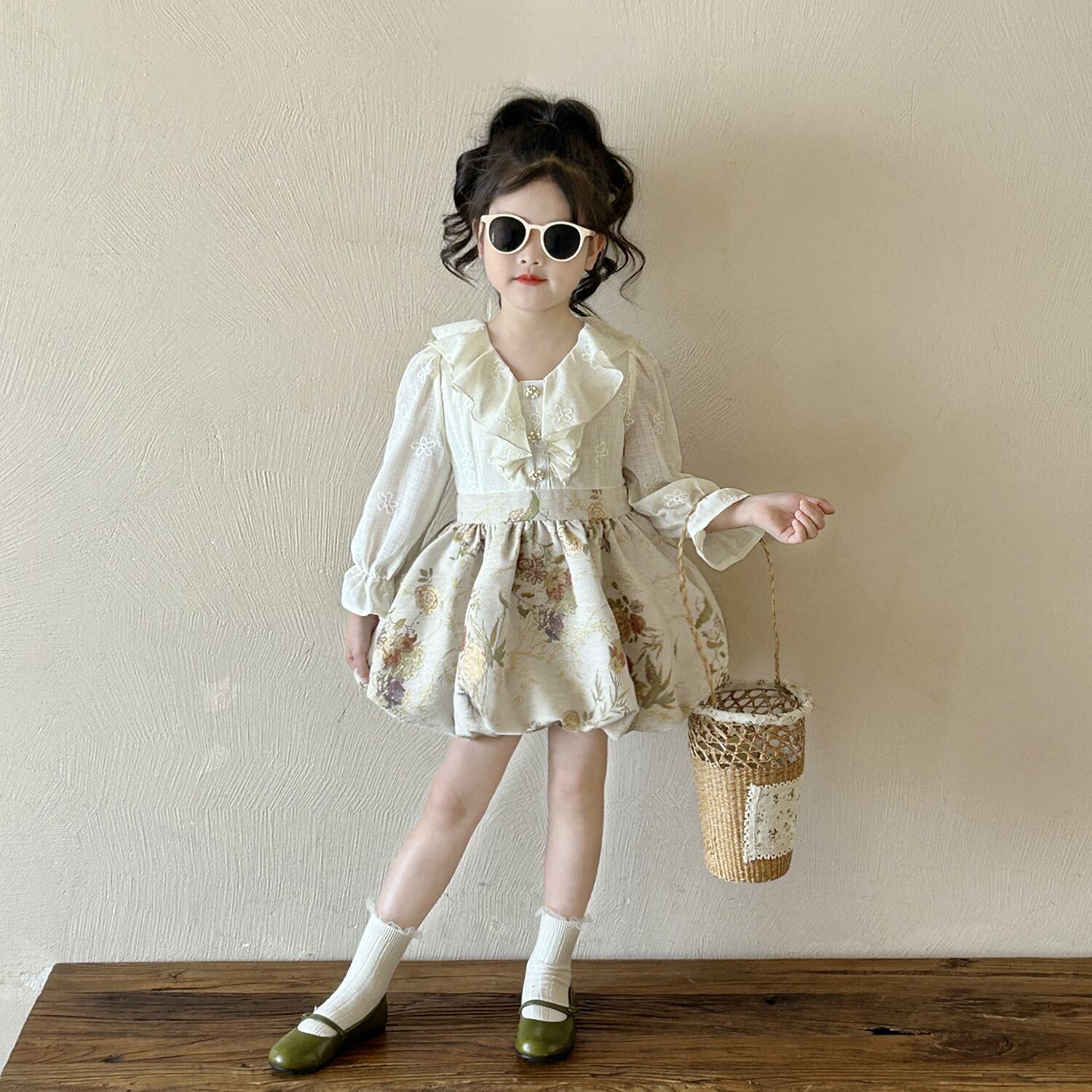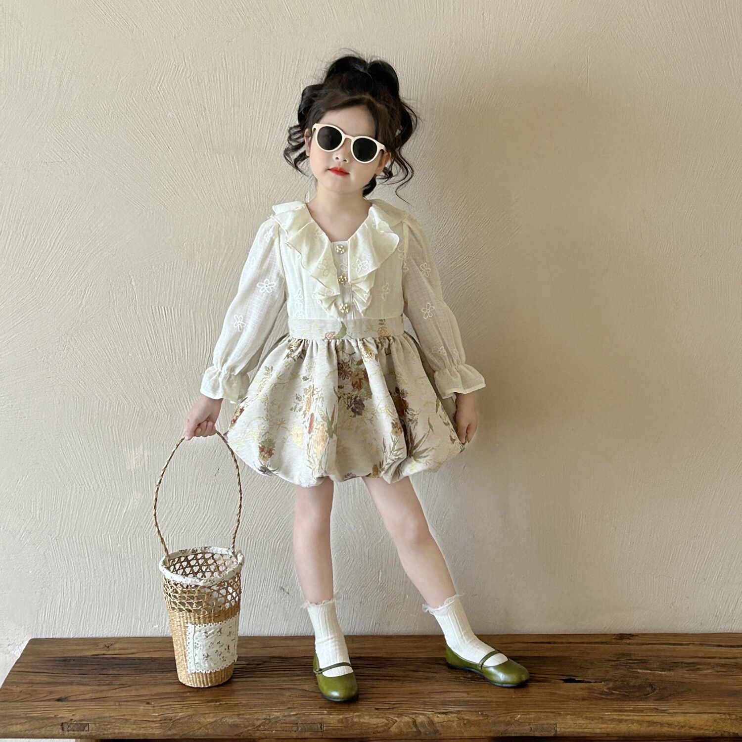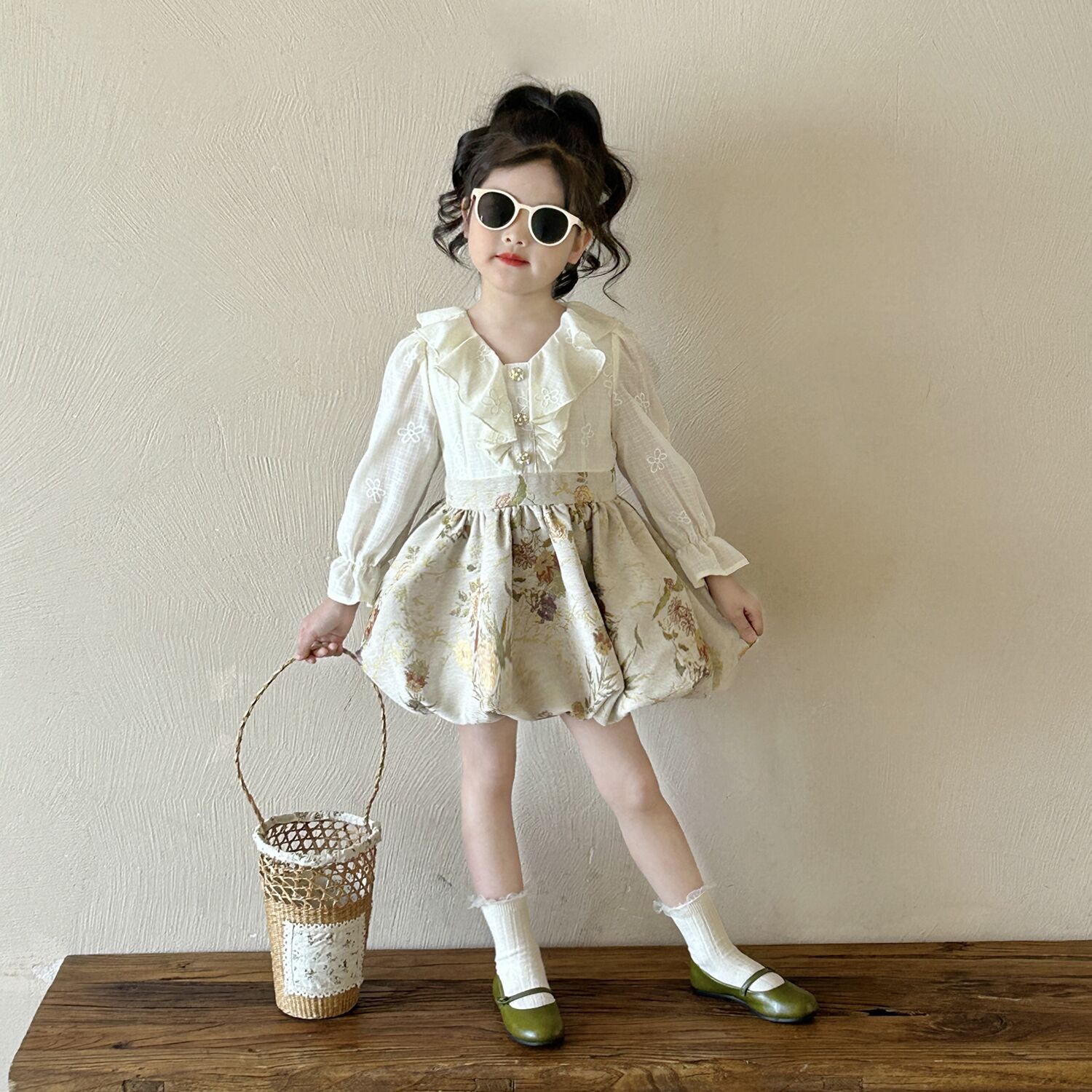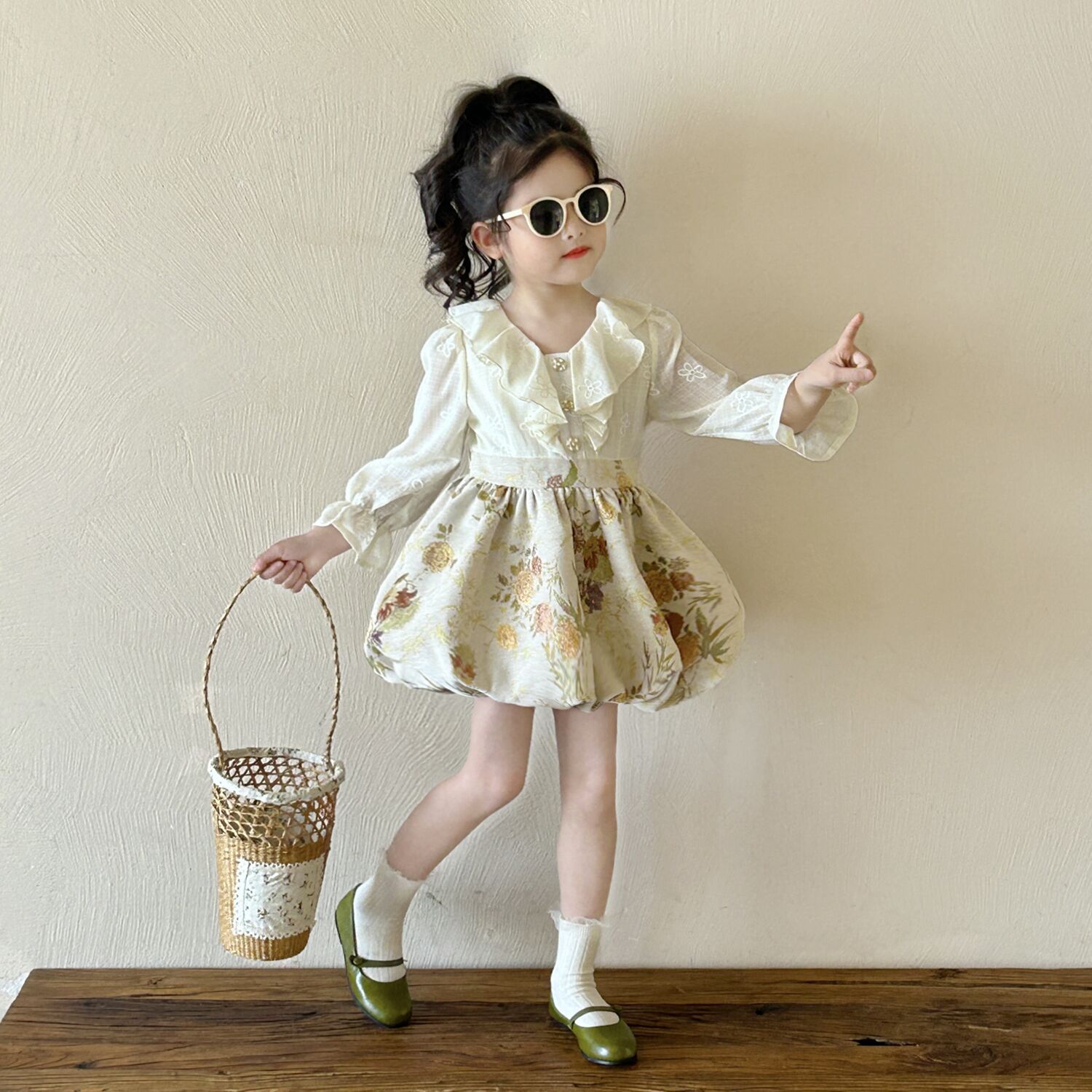 여아 자카드 랜턴 드레스 2025 가을 신상 패셔너블 여아 공주풍 꽃잎 드레스