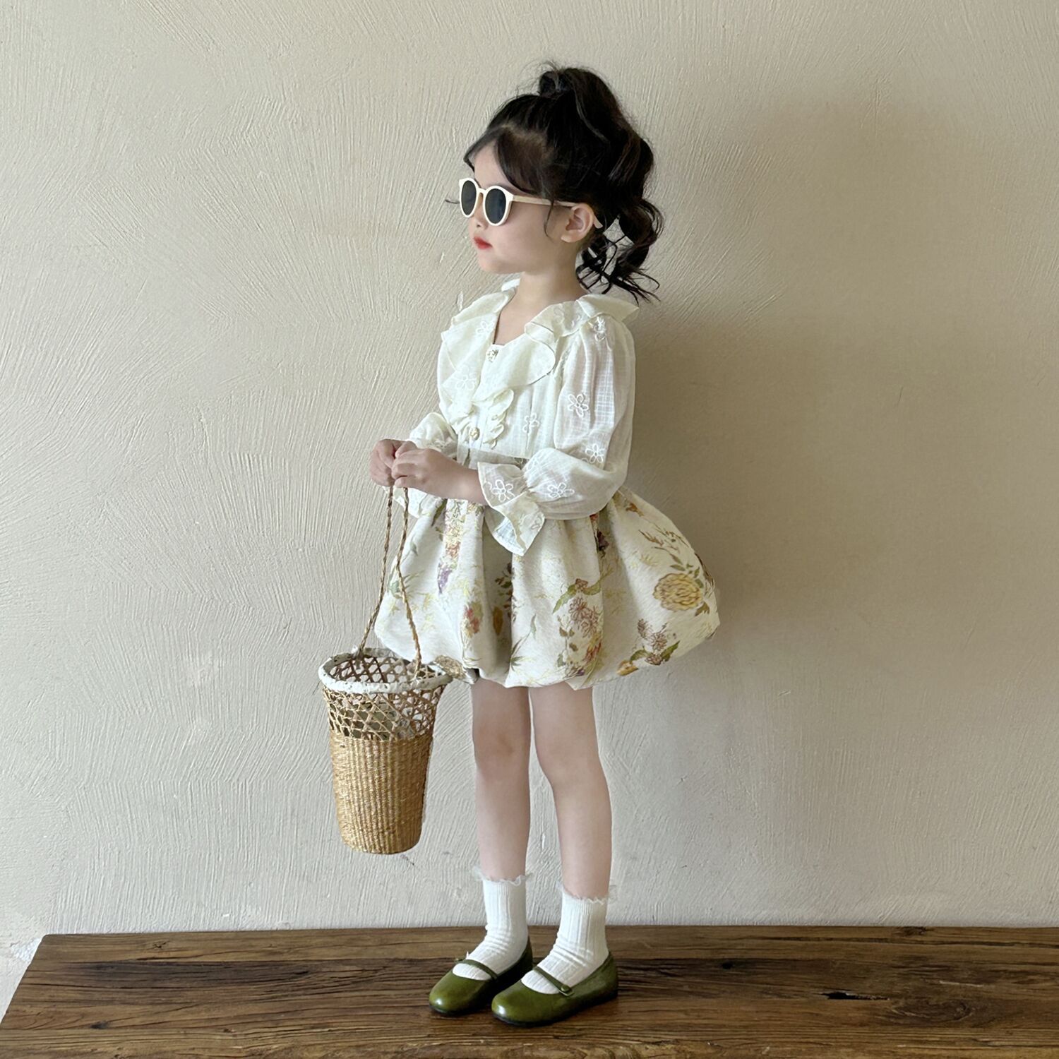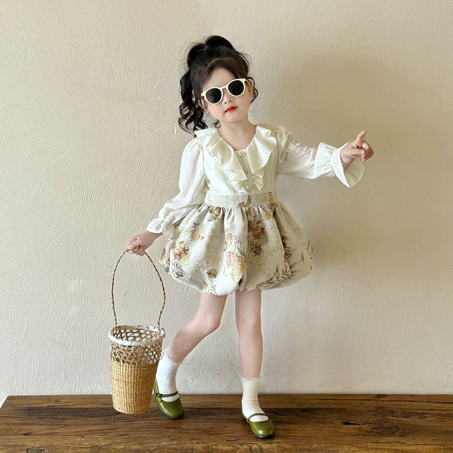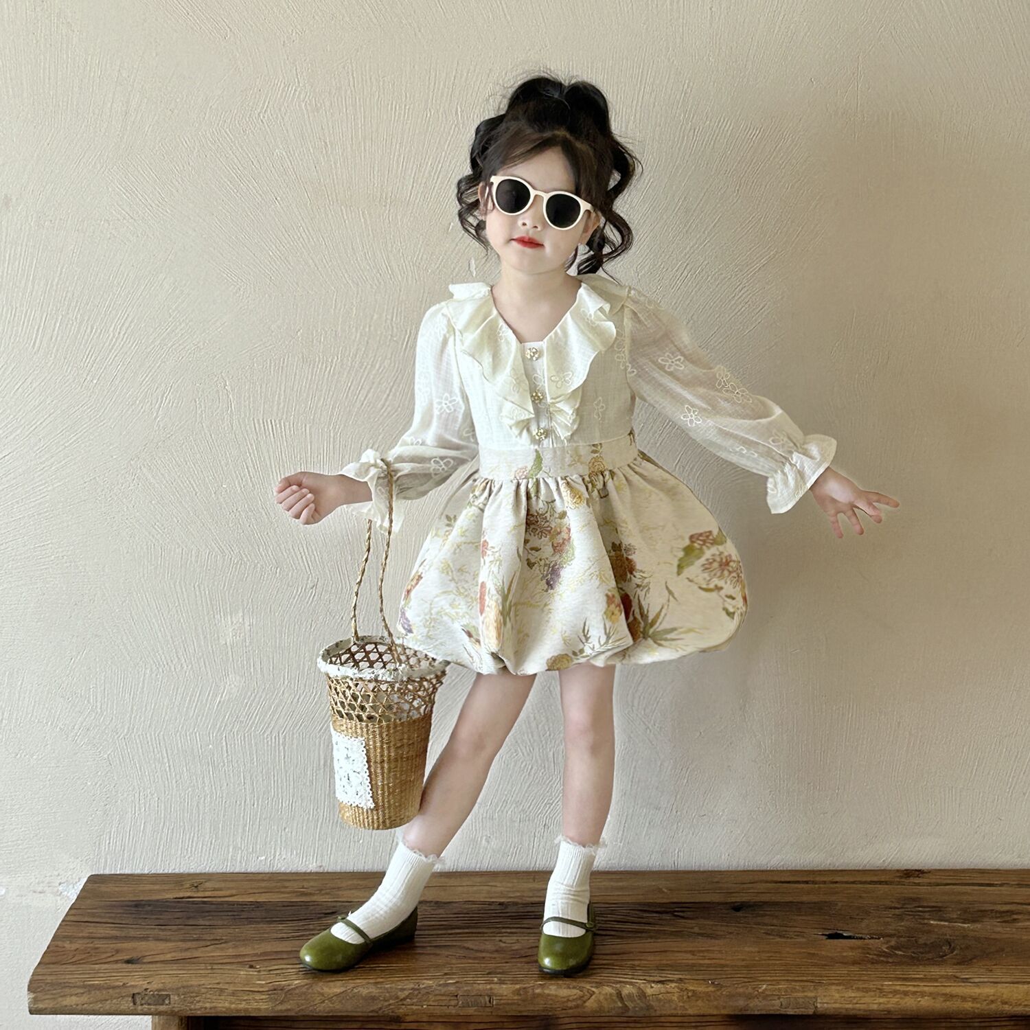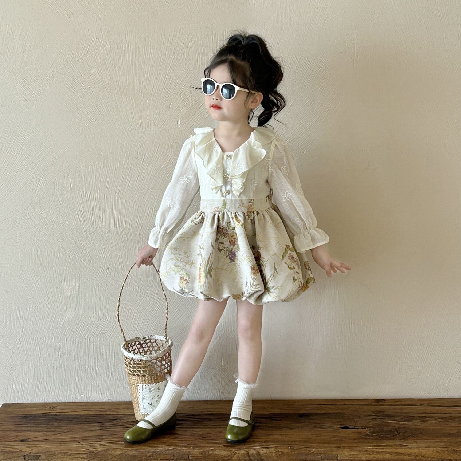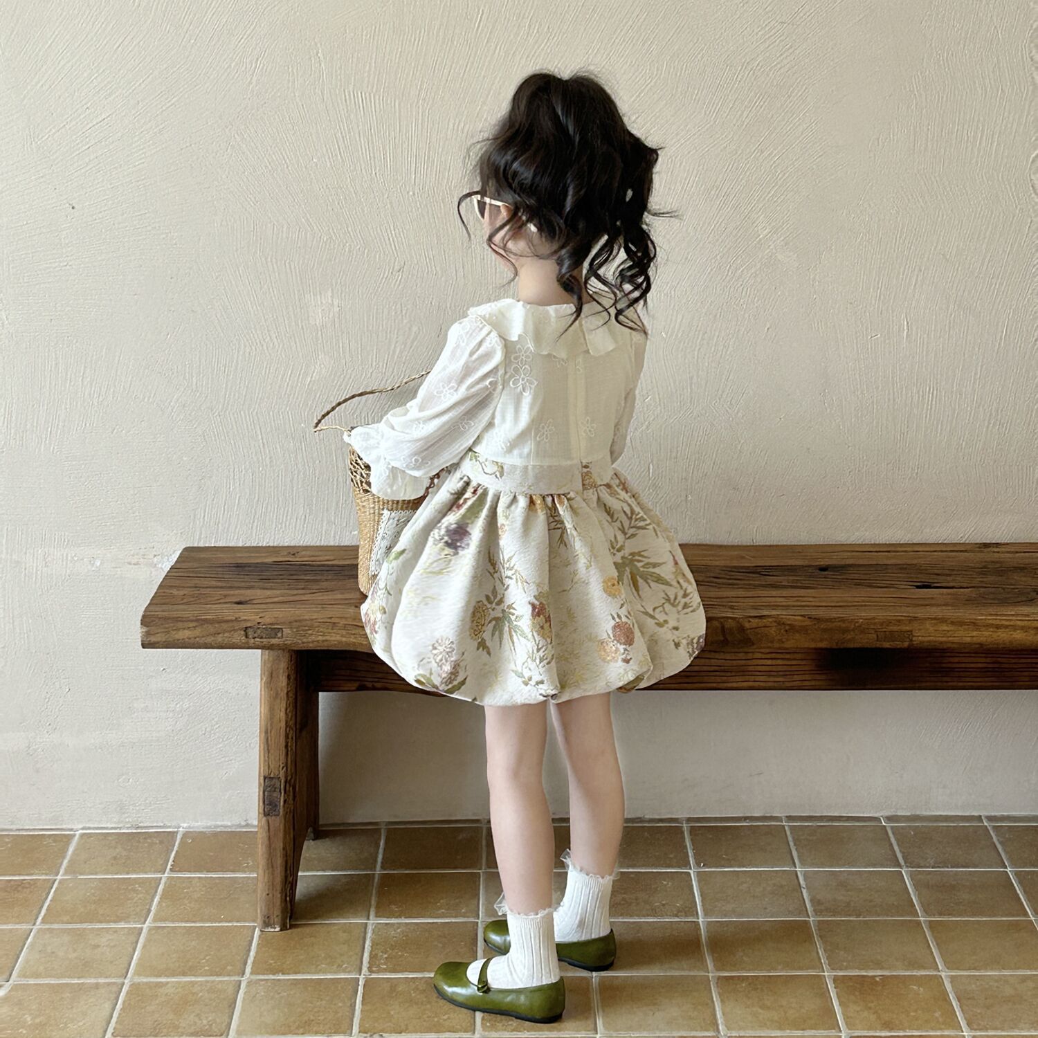 여아 자카드 랜턴 드레스 2025 가을 신상 패셔너블 여아 공주풍 꽃잎 드레스