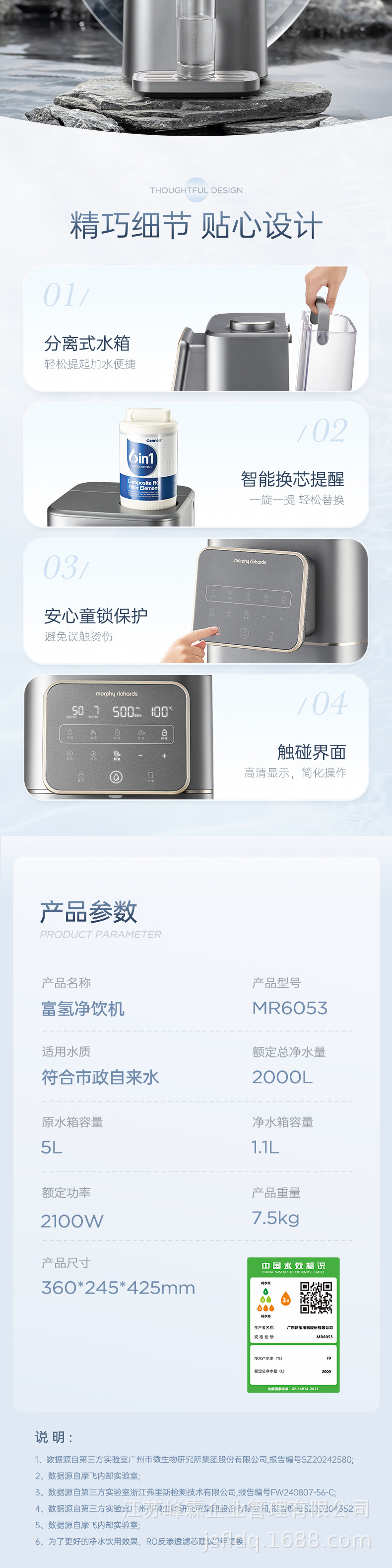 모페이 데스크탑 인스턴트 깨끗한 마시는 기계 수소가 풍부한 약한 알칼리 정수기 역 삼투압 수소 직접 마시는 기계 MR6053스토어 가기