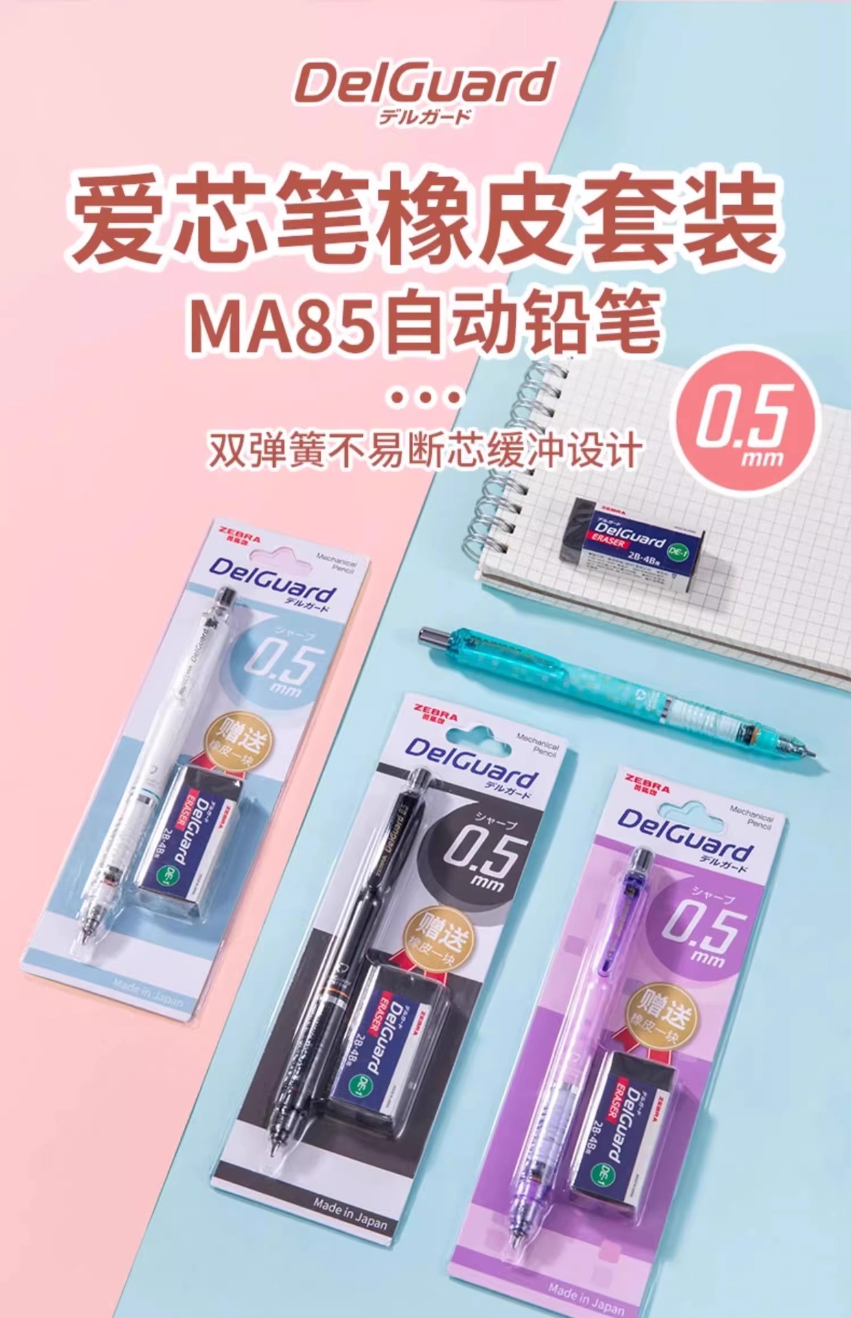 일본 얼룩말 기계 연필 MA85 끊기 쉽지 않은 핵심 지우개 세트 높은 색상 가치 일본 학생 용품스토어 가기