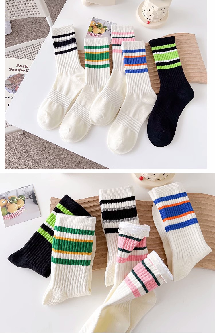 • 종아리 중간 부분의 가로 줄무늬 여성용 양말