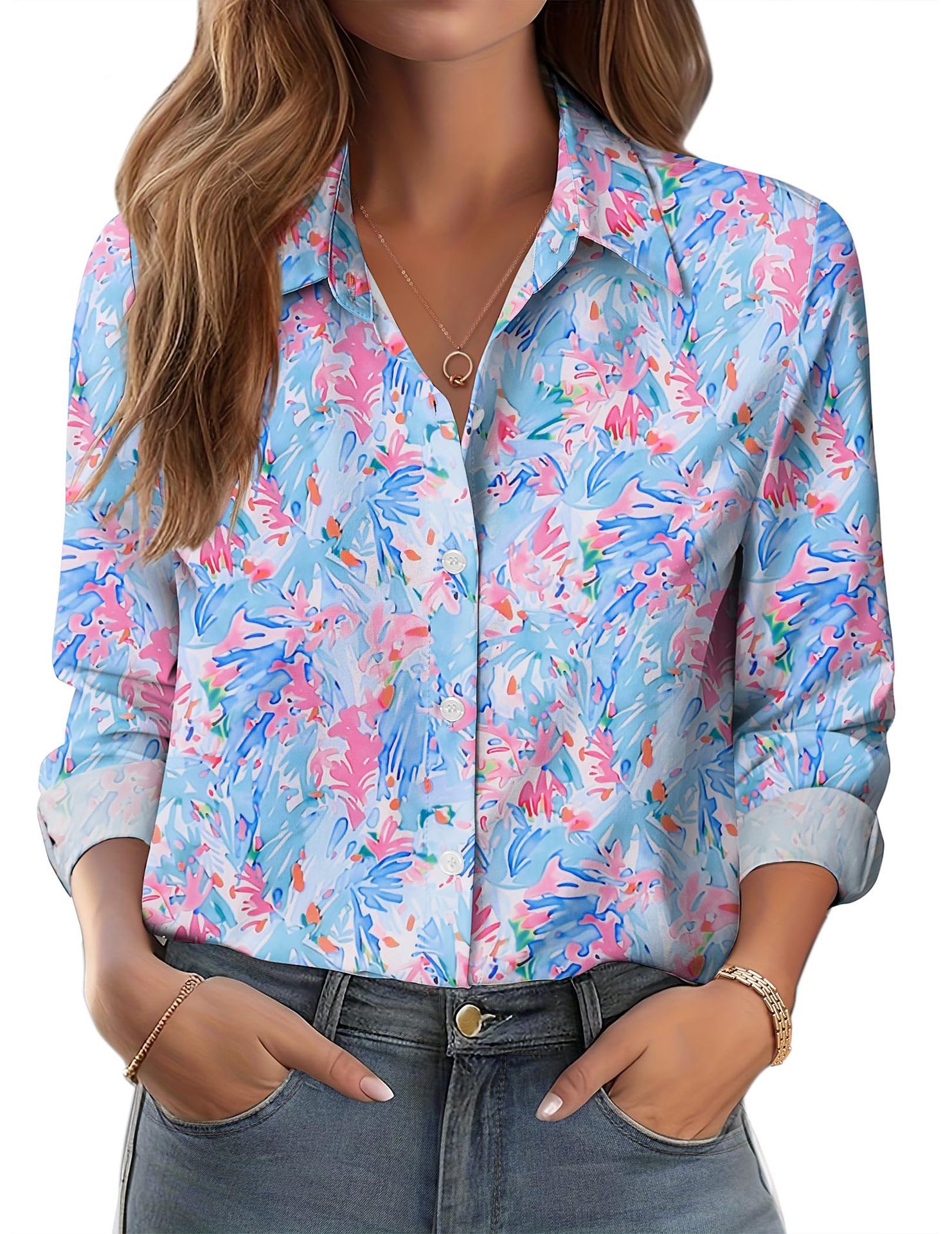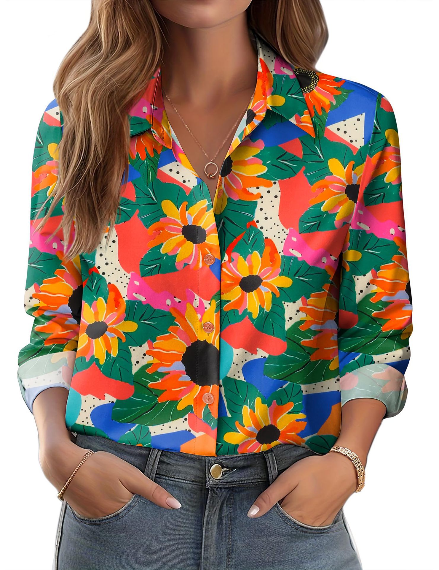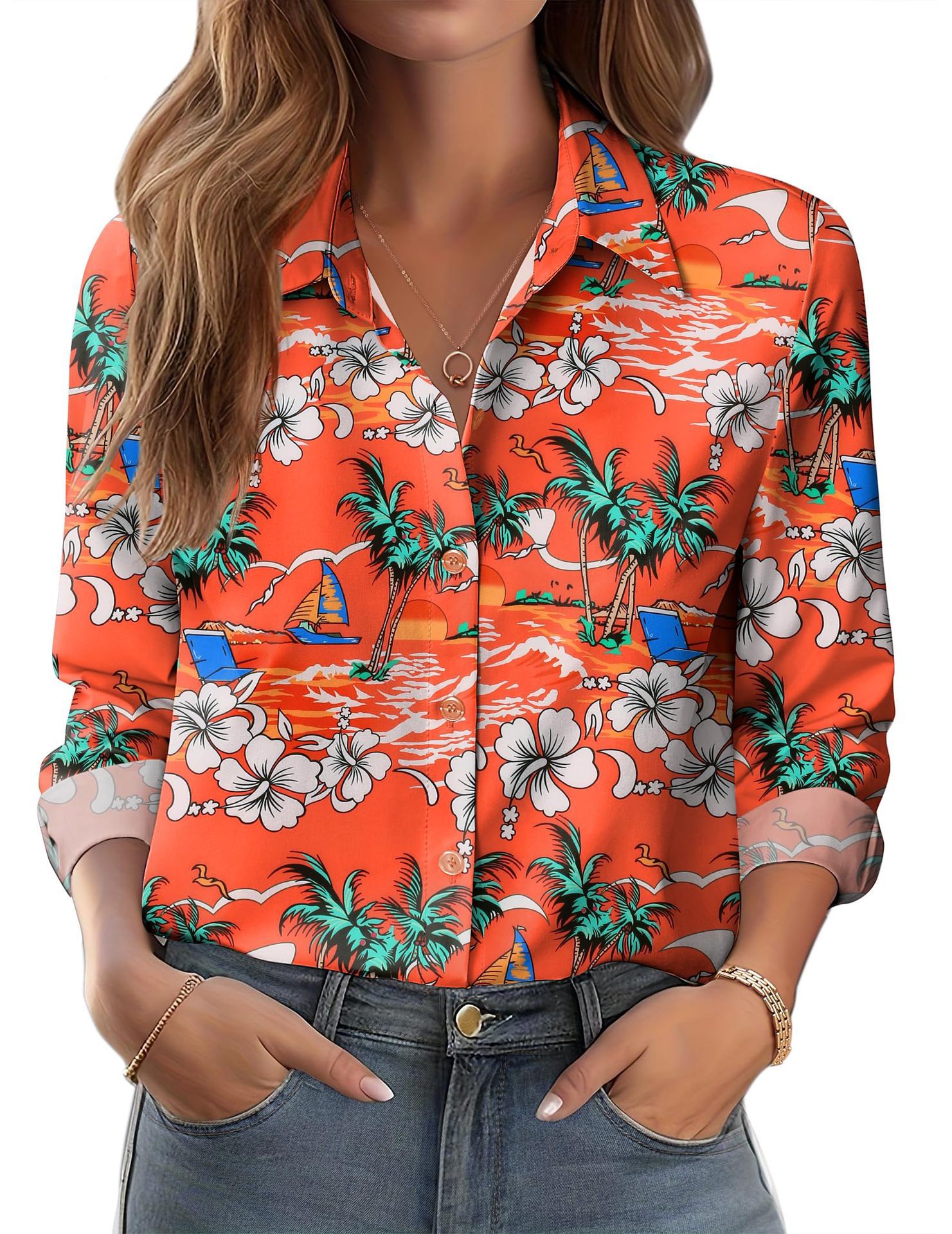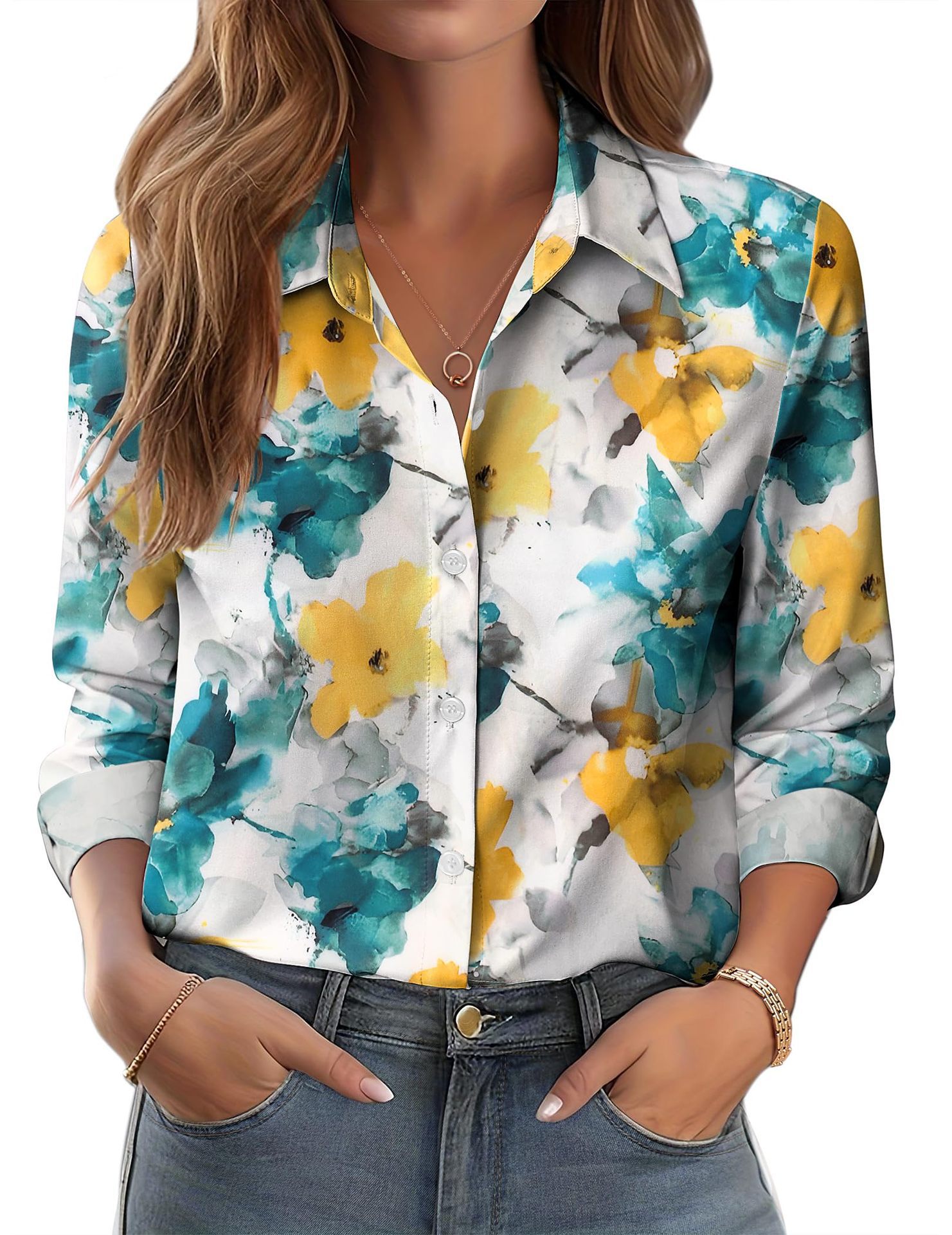 유럽과 미국 스타일의 대외 무역 여성 의류 2025 새로운 캐주얼 조커 하이 퀄리티 복고풍 스타일 긴팔 셔츠 WG18스토어 가기