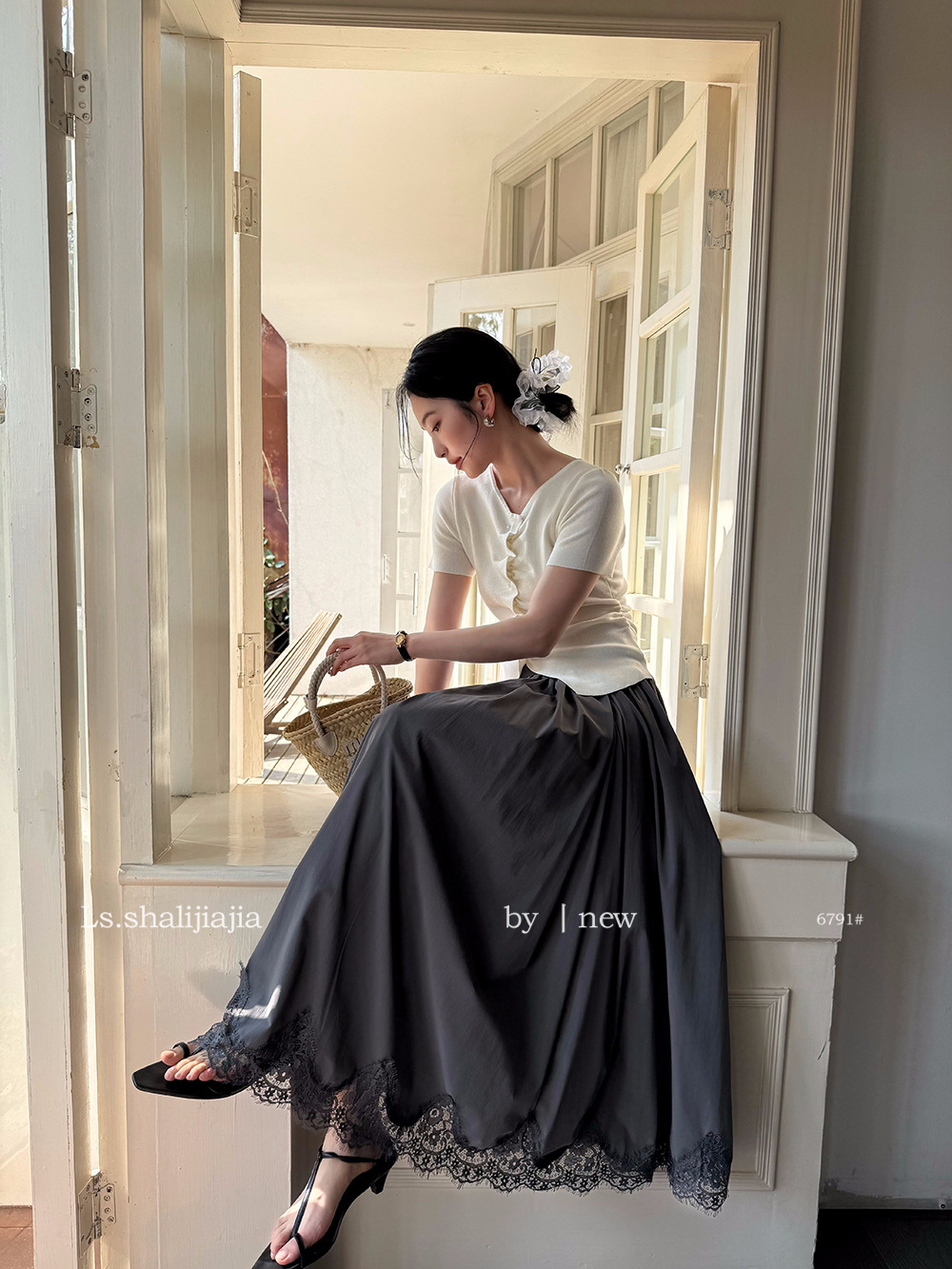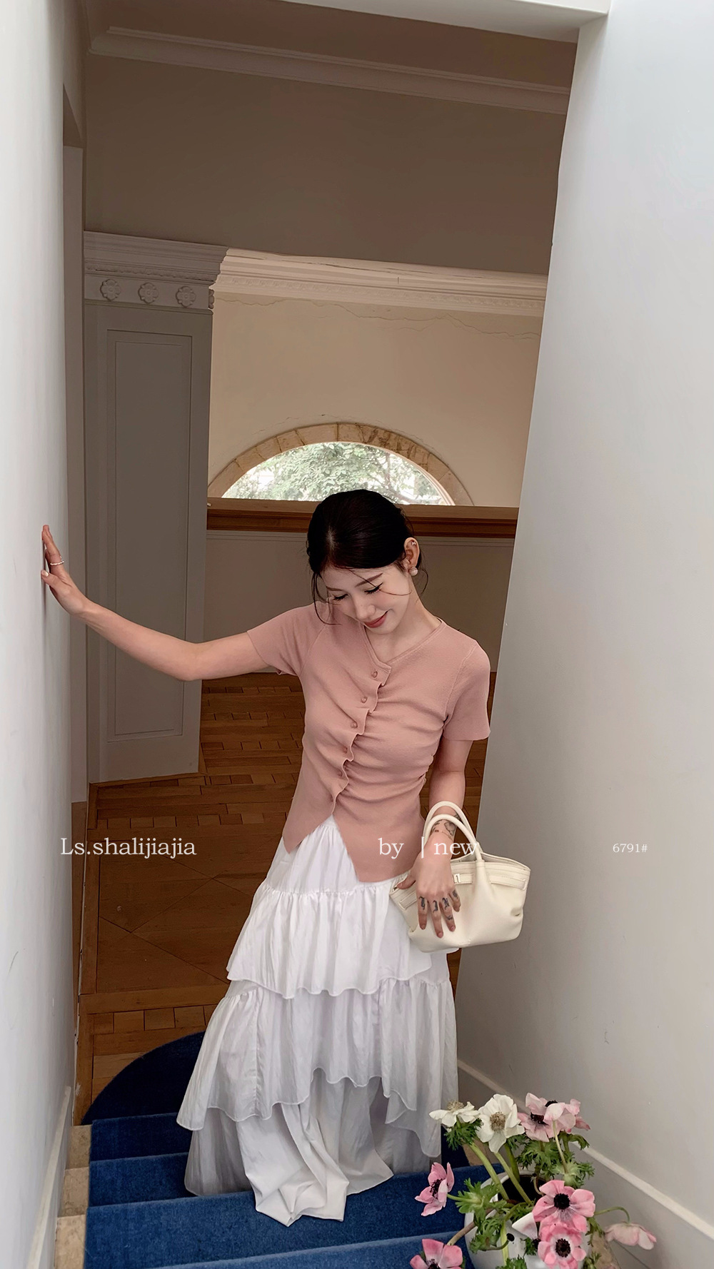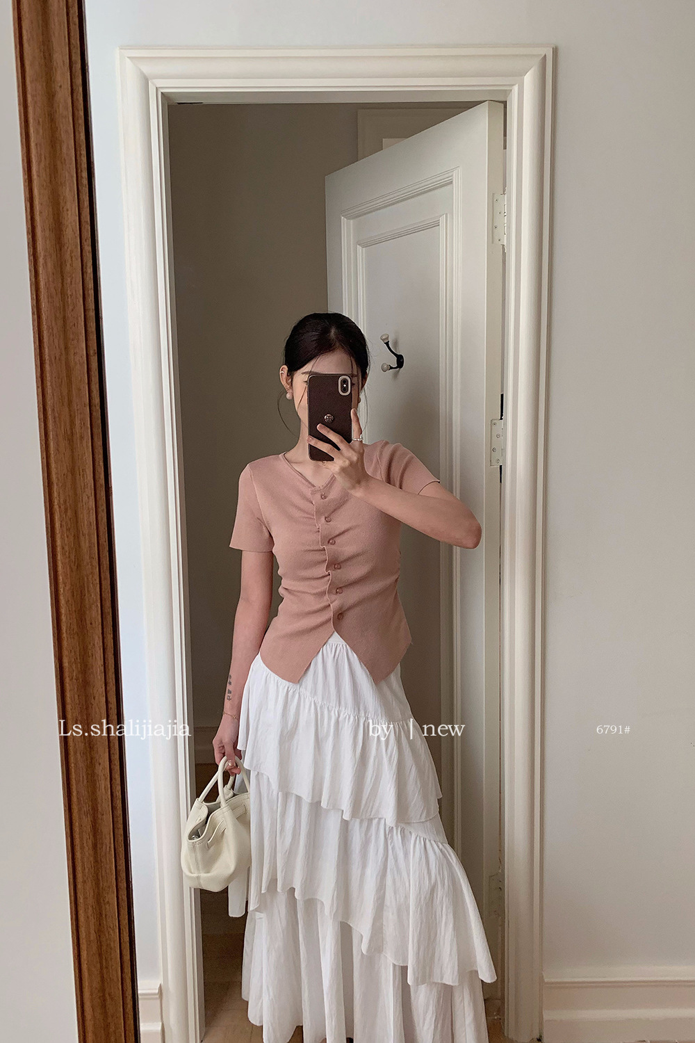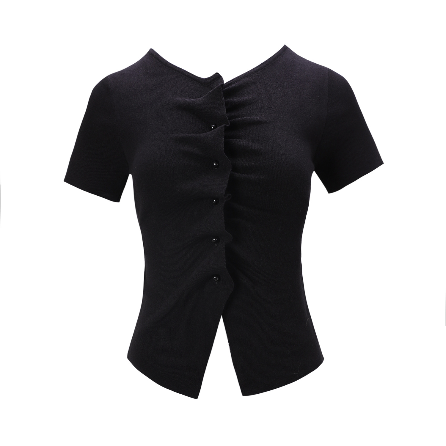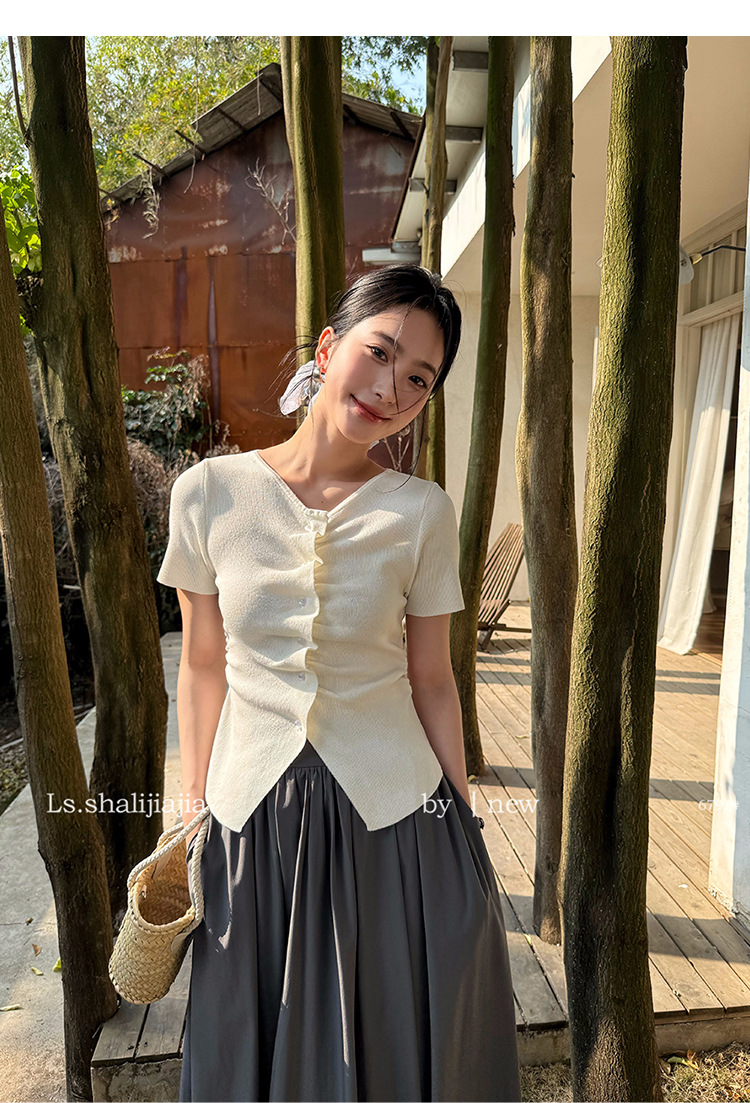 LS 프렌치 플리츠 니쉬 슬림 핏 쇼트 슬리브 탑 광저우 13 라인 2025 봄 새로운 여성복 6791 #스토어 가기