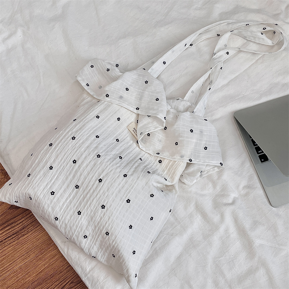 52202 봄과 여름 새로운 쉬폰 러플 숄더 백 귀여운 체리 캔버스 가방 대용량 휴대용 토트 백