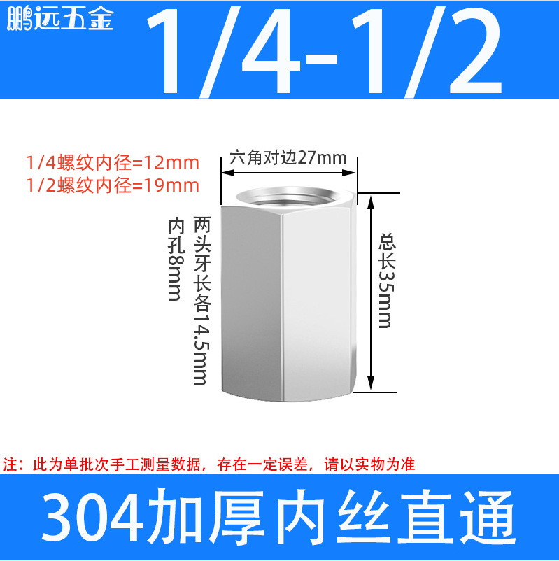 M & 304/316 스테인레스 스틸 두꺼운 내부 와이어 스트레이트 조인트 육각형 내부 스레드 조인트 1/81/43/81/23스토어 가기