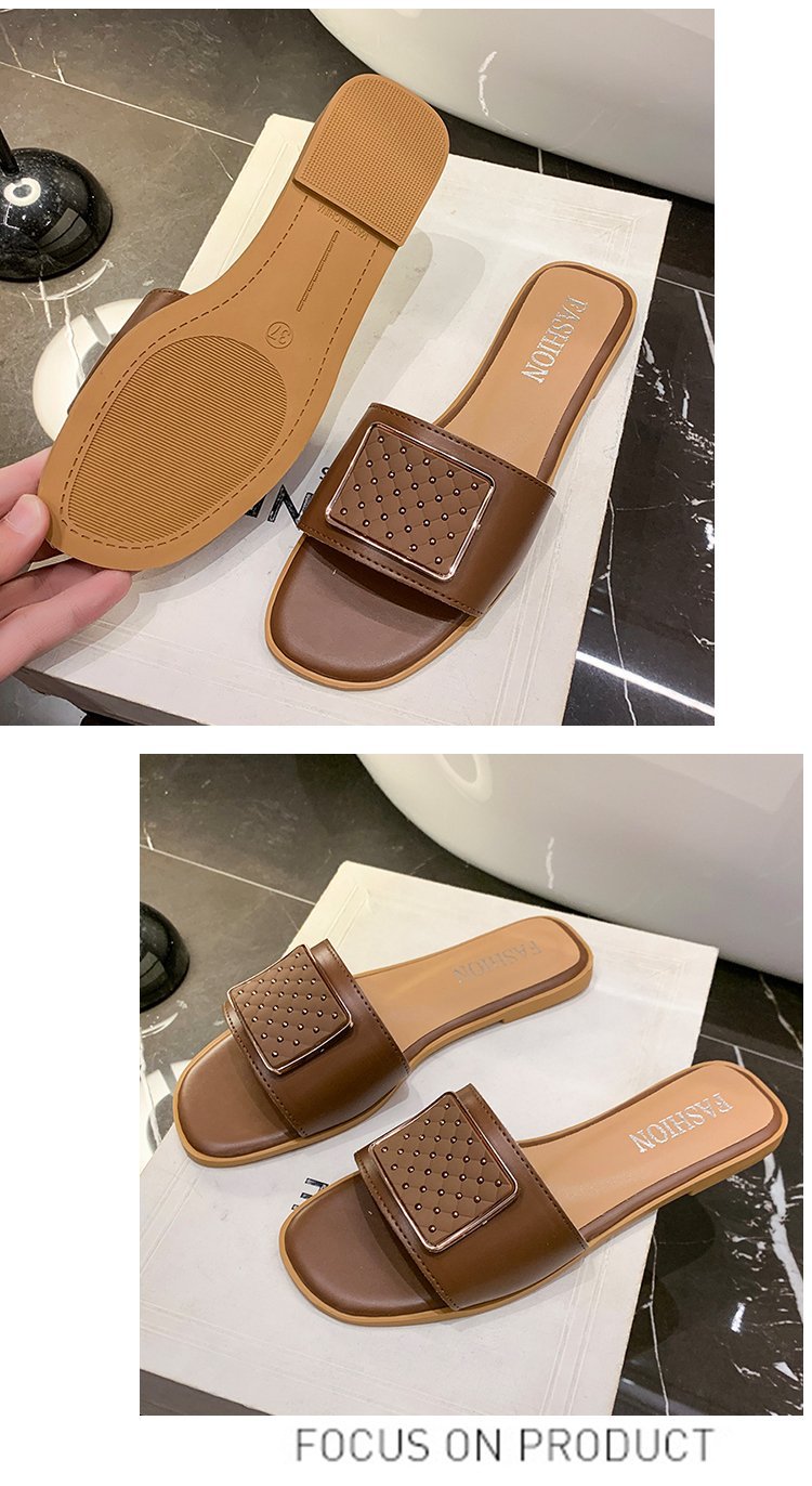 국경 간 대외 무역 슬리퍼 2025 여름 새로운 라운드 헤드 스퀘어 버클 통근 플랫 슬리퍼 캐주얼 한 단어 비치 슬리퍼