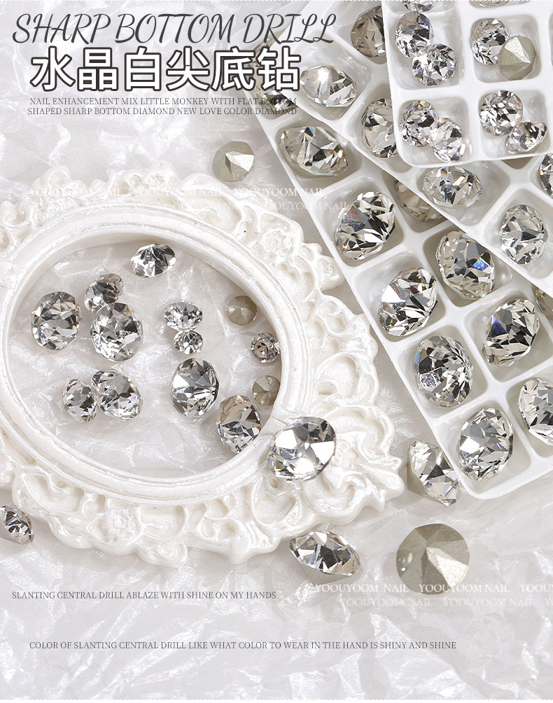 네일 아트 다이아몬드 장식품은 Shi Yue 얼굴 드릴 유리 모조 다이아몬드의 전체 배치를 플래시하여 드릴 핑거 네일 장식품의 바닥, 날카로운 바닥 더미를 떨어 뜨릴 수 없습니다.