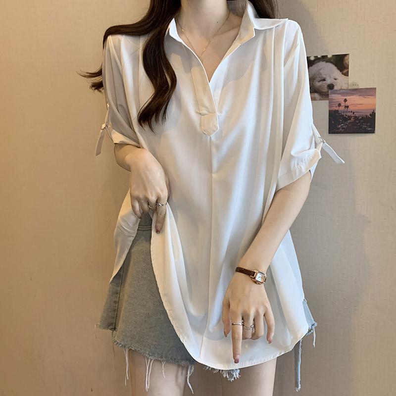 한국 스타일 플러스 대형 사이즈 1.00 kg-150.00 kg 통비 반팔 셔츠 여름 올 매치 고기 커버 슬림 세련된 칼라 탑