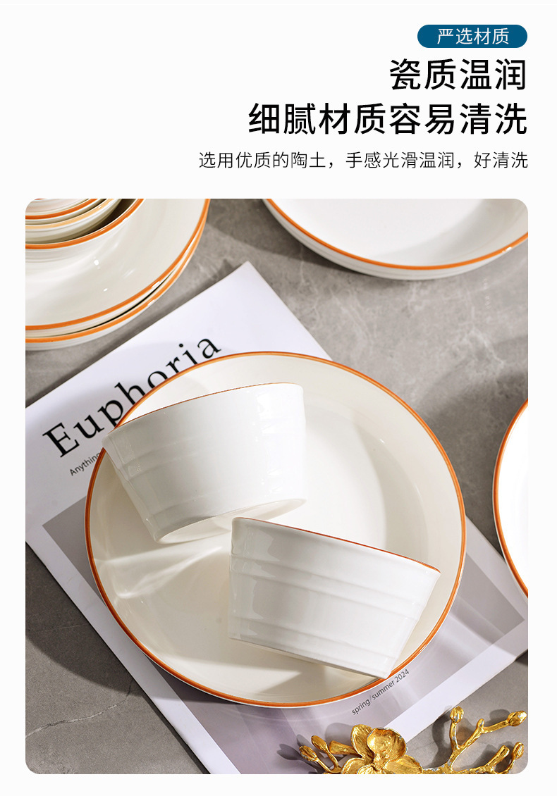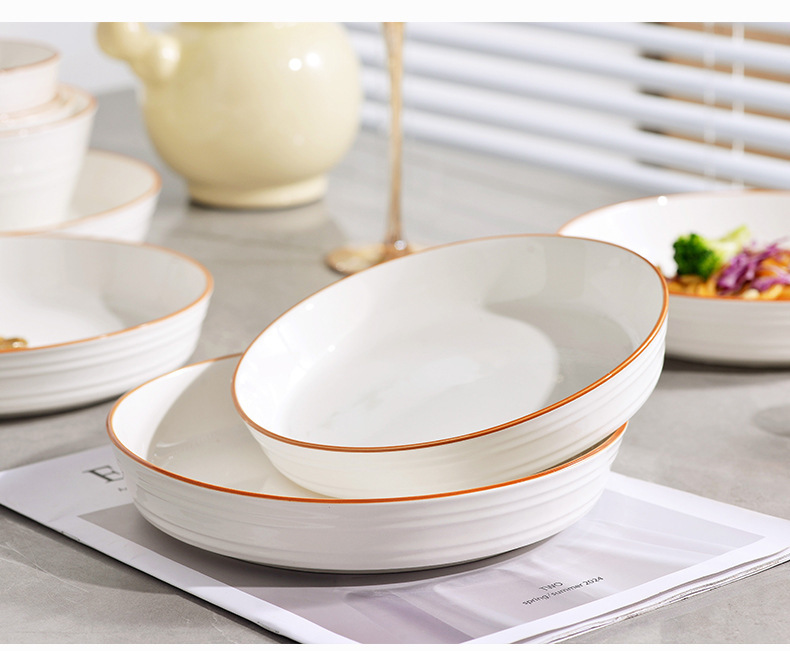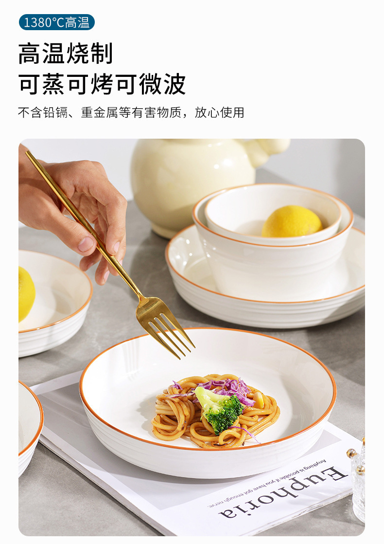 프랑스 크림 스타일 높은 색상의 세라믹 요리와 접시 세트 유약 색상 가정용 간단한 국수 그릇 수프 그릇 요리 쌀판