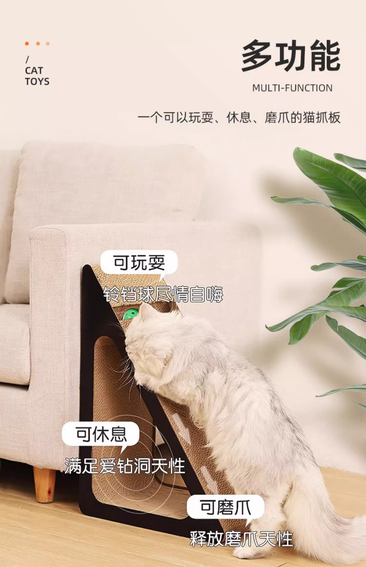 국경 도매 고양이 스크래치 보드 내마모성 고양이 장난감 자기 구호 수직 삼각형 고양이 발톱 보드 안티 스크래치 소파스토어 가기