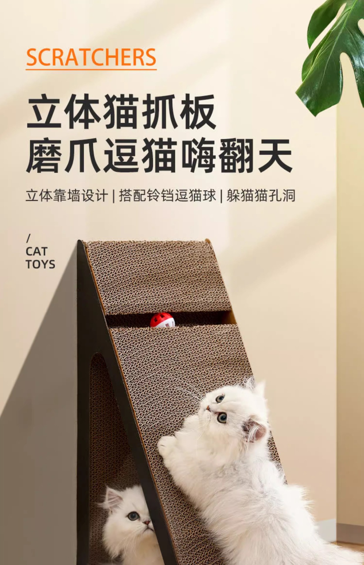 국경 도매 고양이 스크래치 보드 내마모성 고양이 장난감 자기 구호 수직 삼각형 고양이 발톱 보드 안티 스크래치 소파