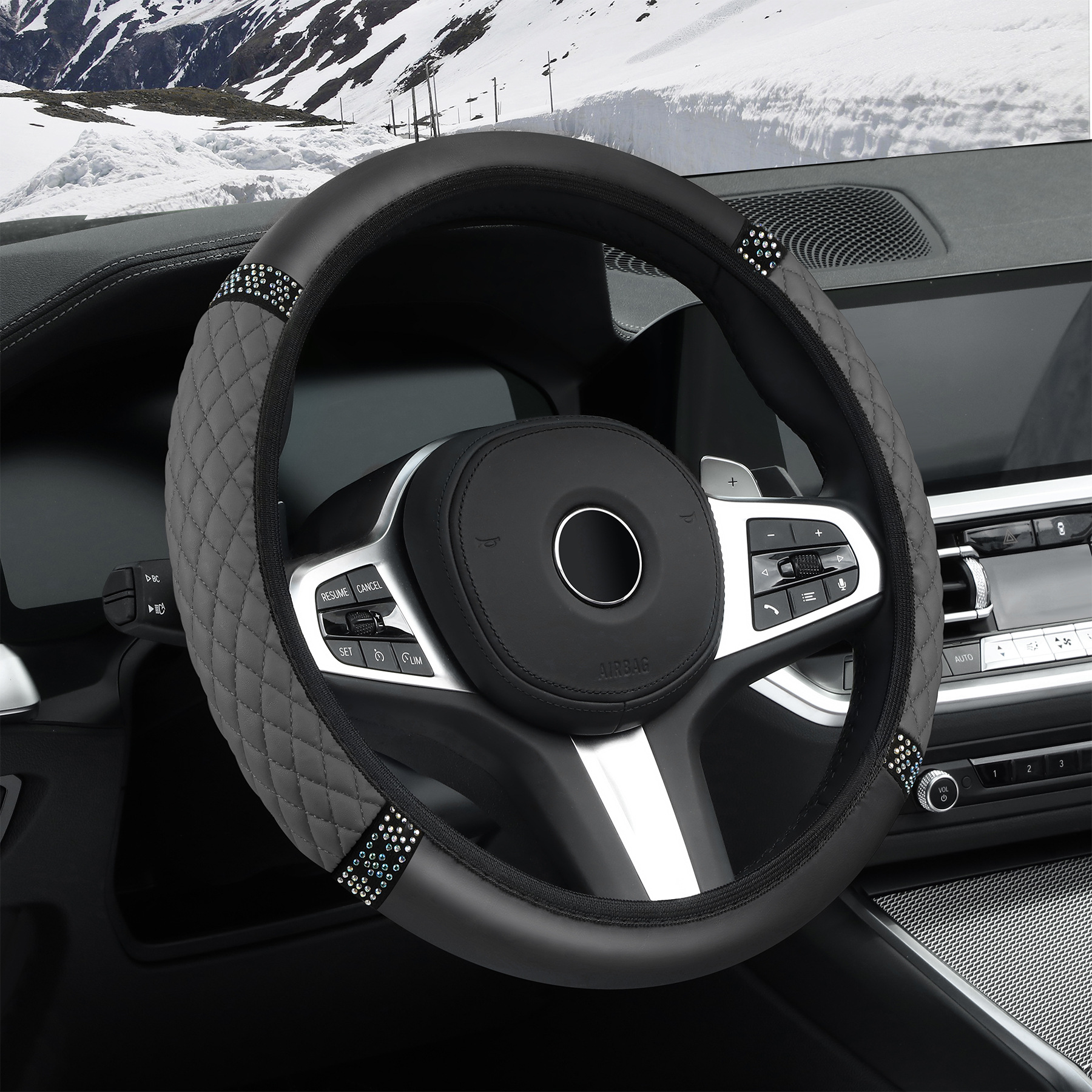 수 놓은 3 차원 다이아몬드가 박힌 자동차 가죽 비 내부 스티어링 휠 커버 사계절 유니버설 스트레치 크로스 보더 자동차 장갑