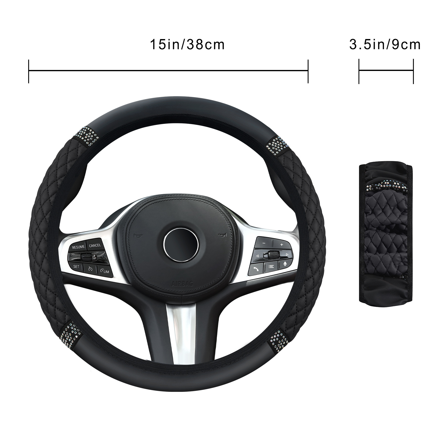 수 놓은 3 차원 다이아몬드가 박힌 자동차 가죽 비 내부 스티어링 휠 커버 사계절 유니버설 스트레치 크로스 보더 자동차 장갑스토어 가기