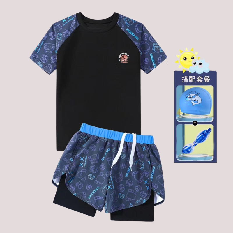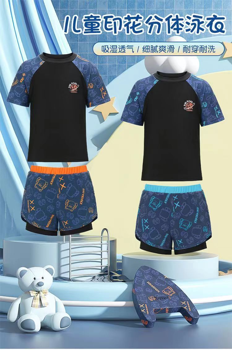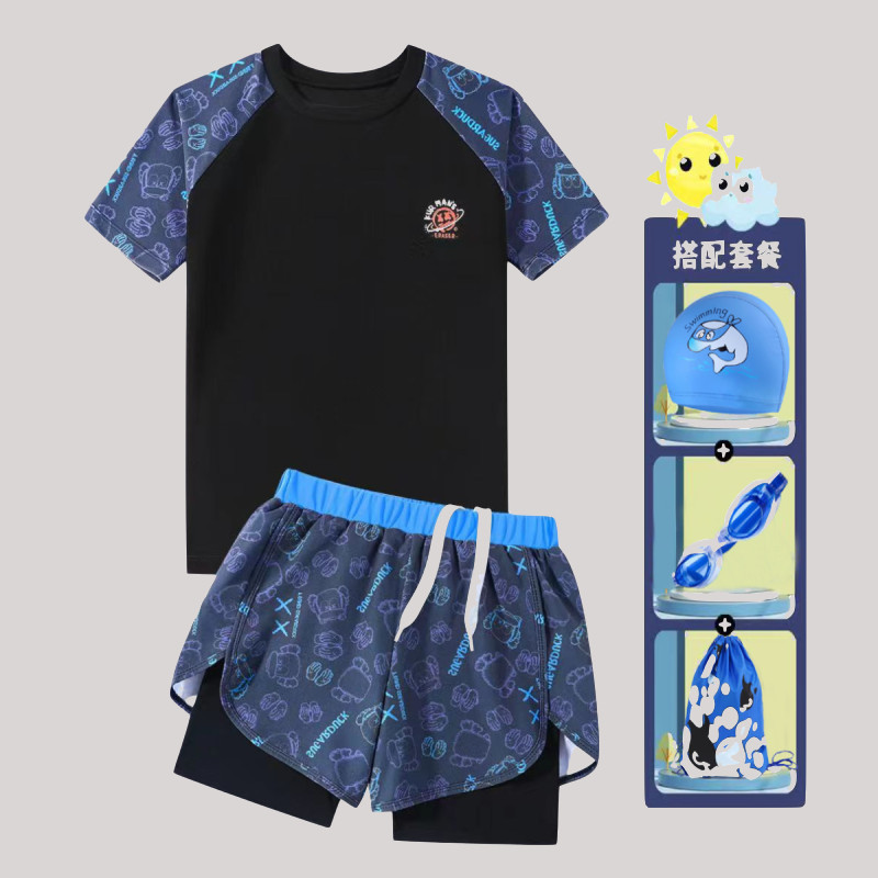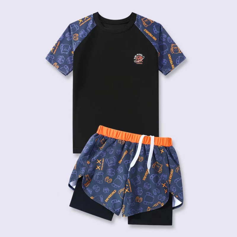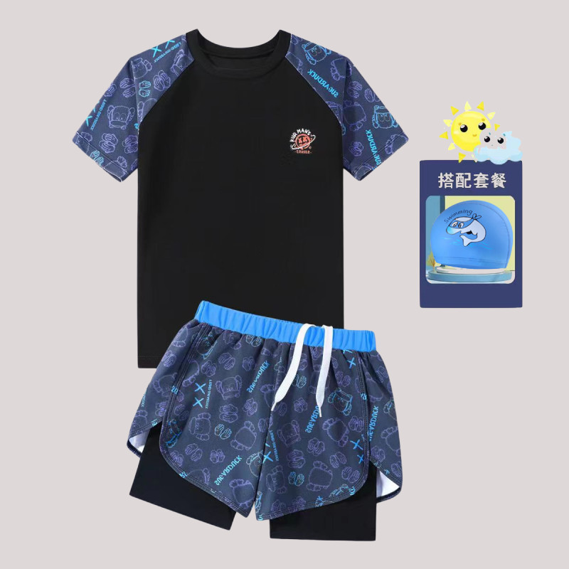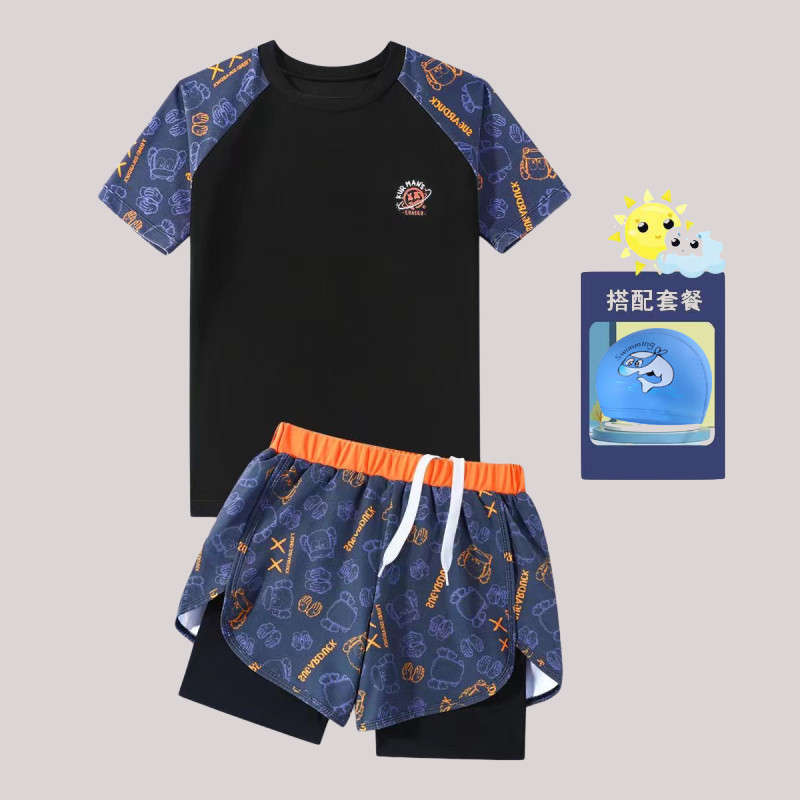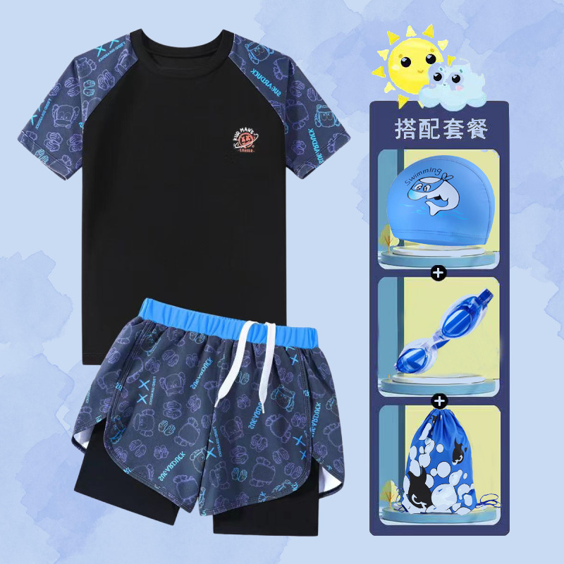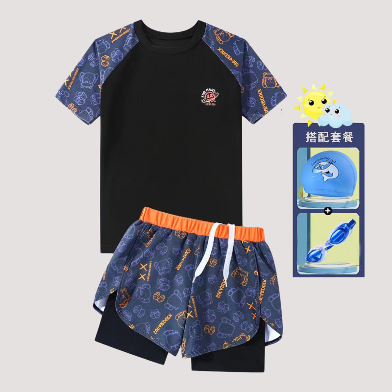 [3503 컬렉션] 어린이 수영복 남자 스플릿 세트 더블 레이어 안티 엠블러스먼트 수영 트렁크 소년 수영 중 큰 아이들