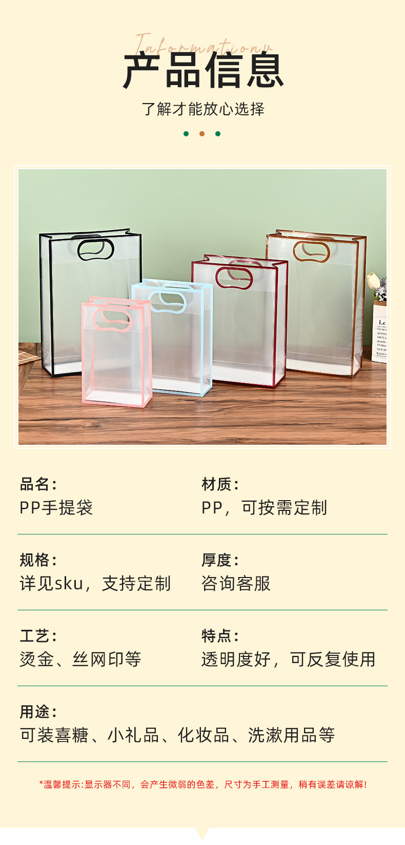 재고 pp 인터넷 유명 핸드백 Ins 고급 감각 투명 플라스틱 생일 선물 가방 웨딩 사탕 손 선물 가방