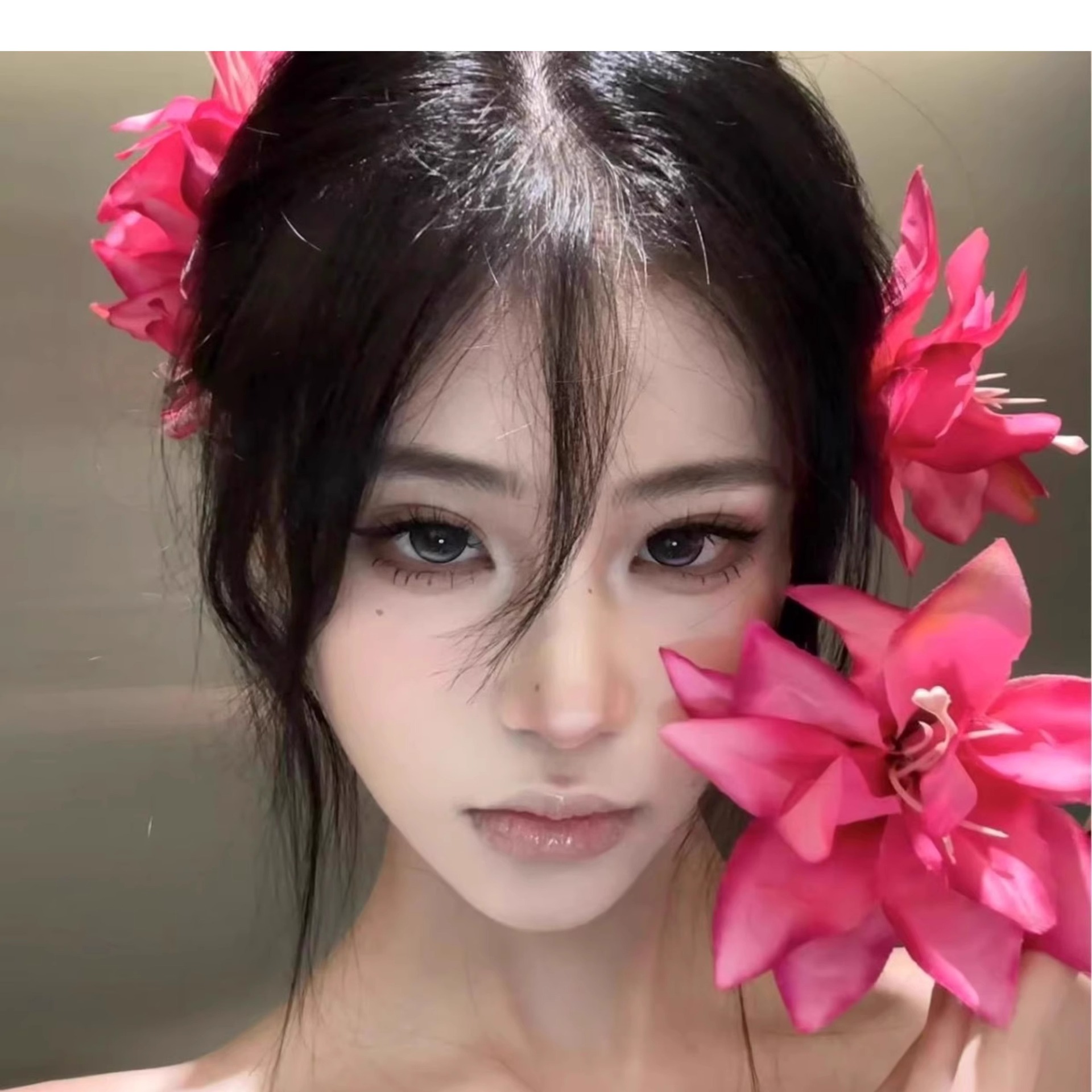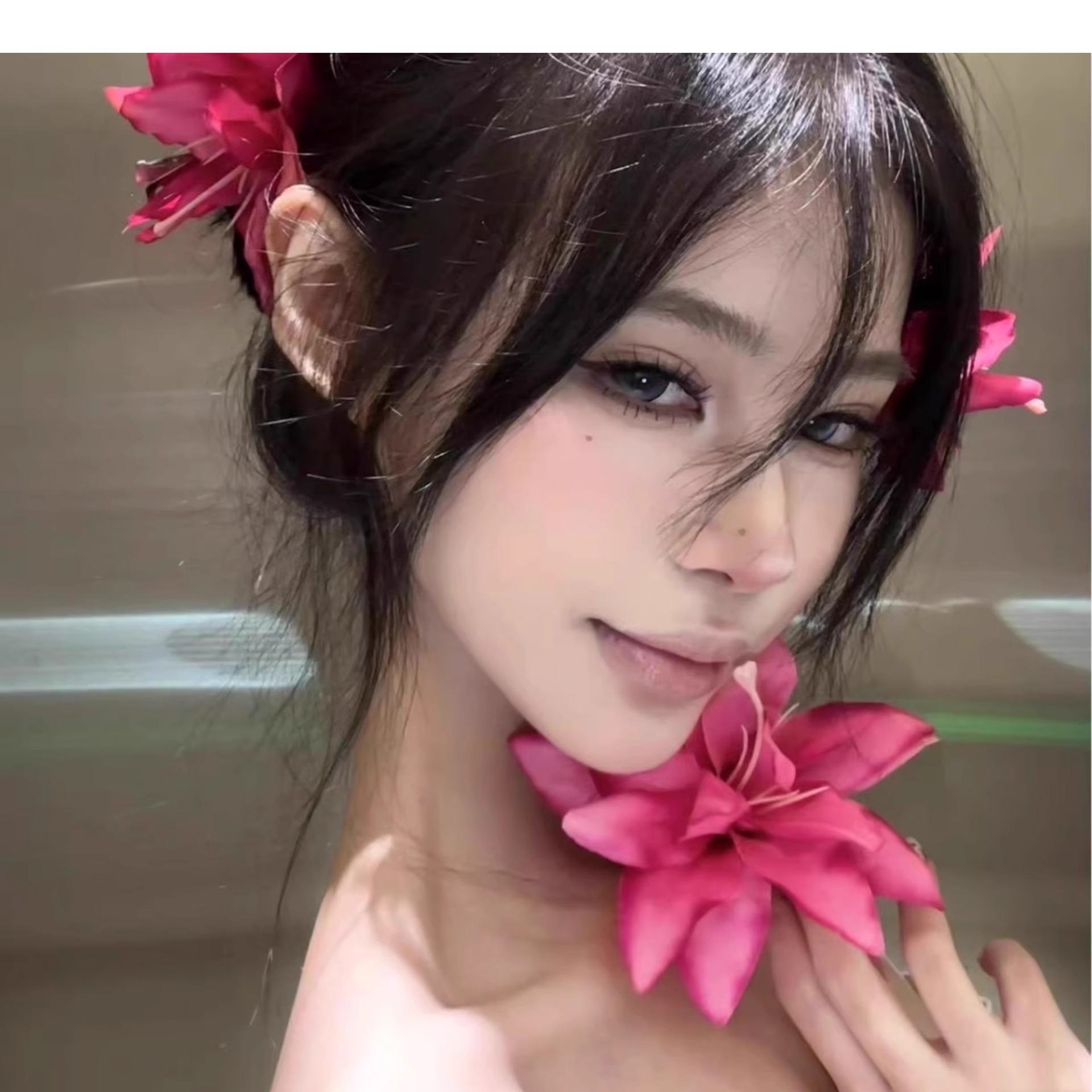 • 6#사유리 클립-로즈 레드 [3 꽃]