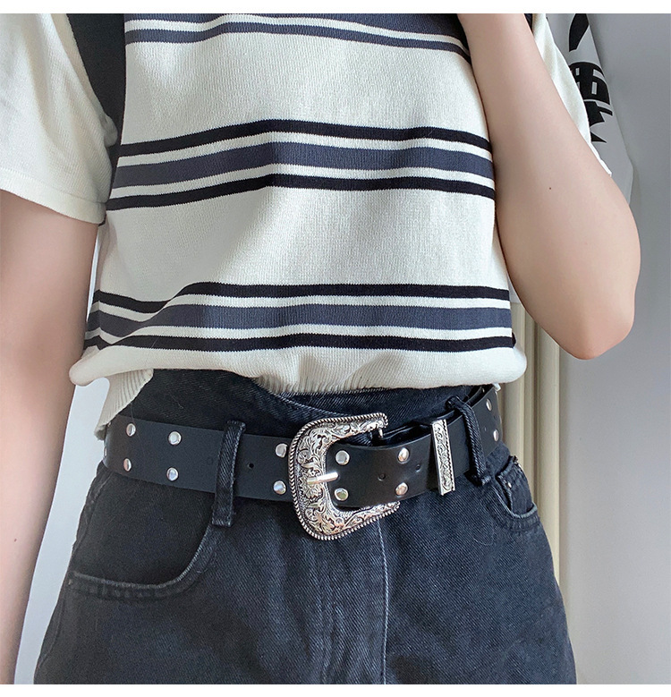 Y2K 레트로 조커 숙녀 벨트 새로운 스파이스 소녀 조각 리벳 핀 버클 패션 벨트 여성 공장 도매스토어 가기