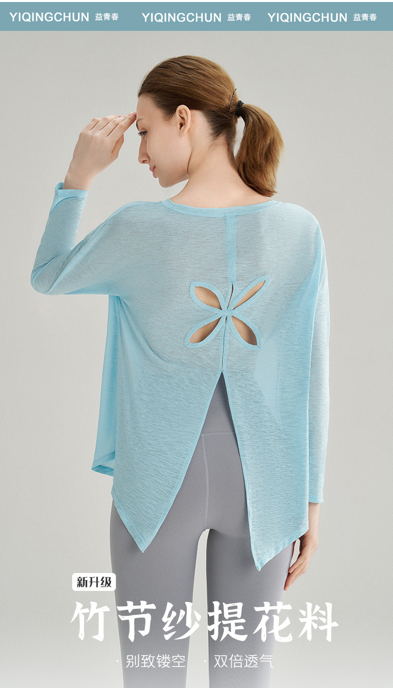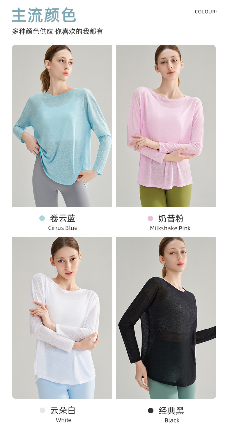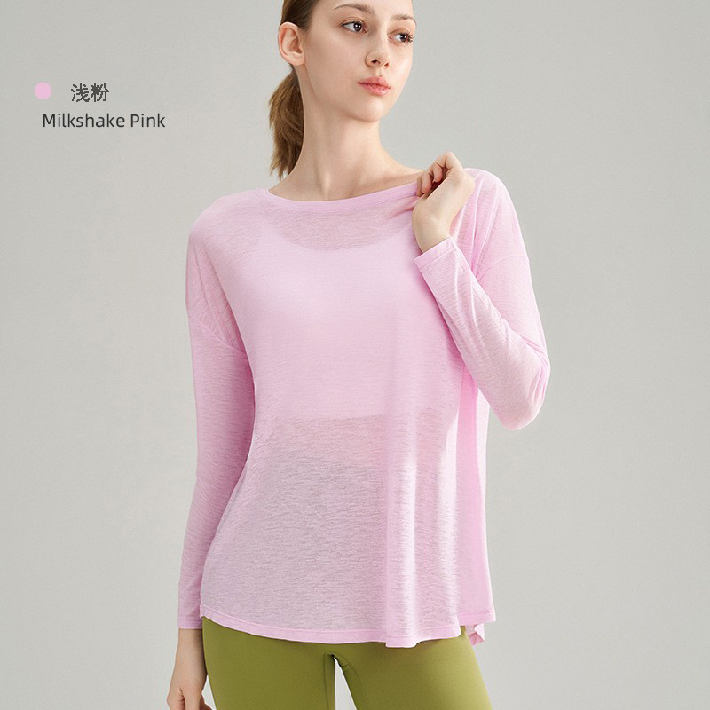 여성용 여름 얇은 통기성 피트니스 스포츠 커버업, 대나무 섬유로 만든 루즈핏 요가복 긴팔 상의, 젊은 여성에게 적합