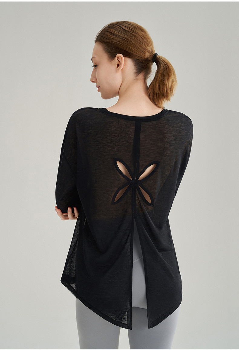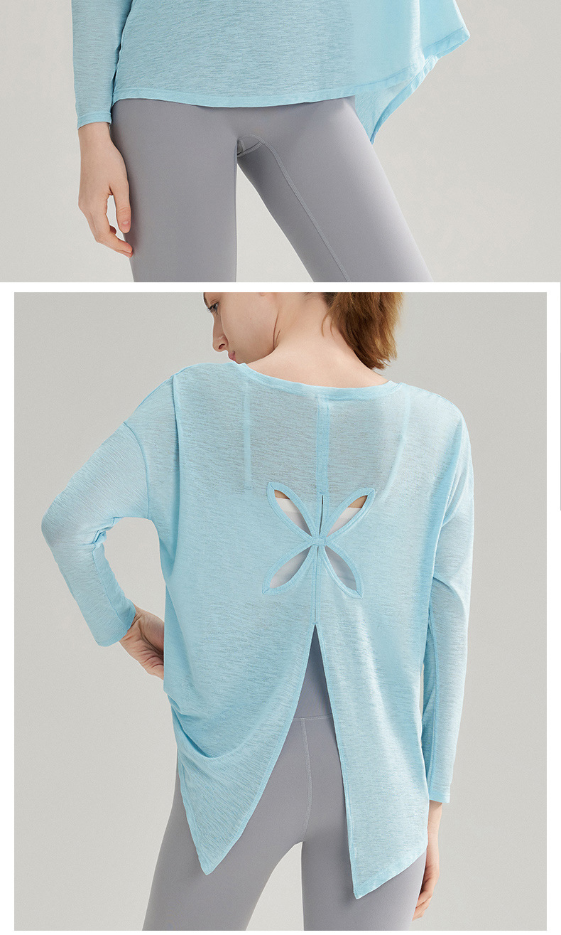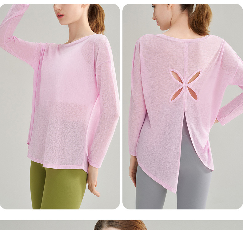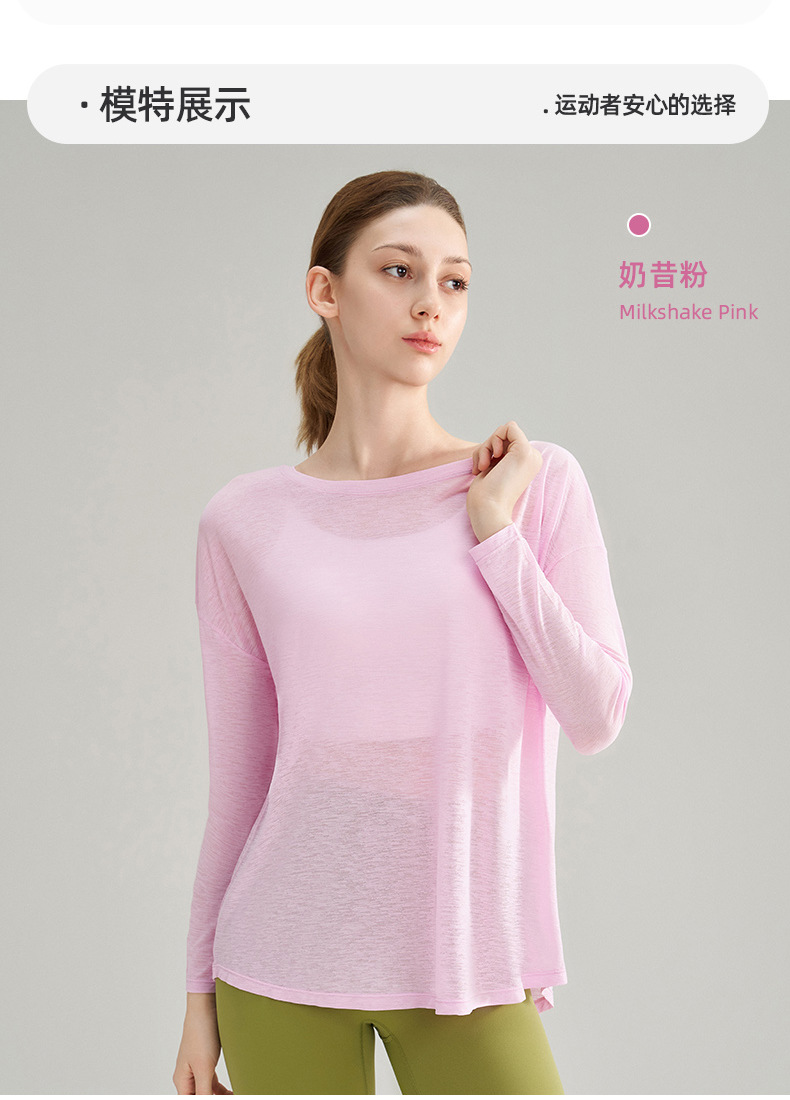 여성용 여름 얇은 통기성 피트니스 스포츠 커버업, 대나무 섬유로 만든 루즈핏 요가복 긴팔 상의, 젊은 여성에게 적합