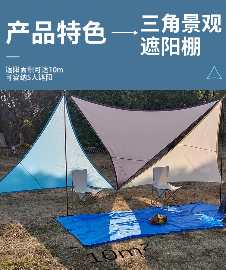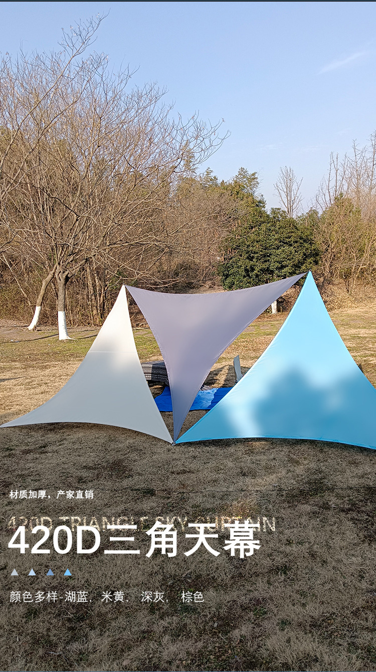 야외 다기능 삼각형 캐노피, 방수, 발수, 자외선 차단, 방풍 및 차양 420D 캠핑 휴대용 태양 가리개스토어 가기