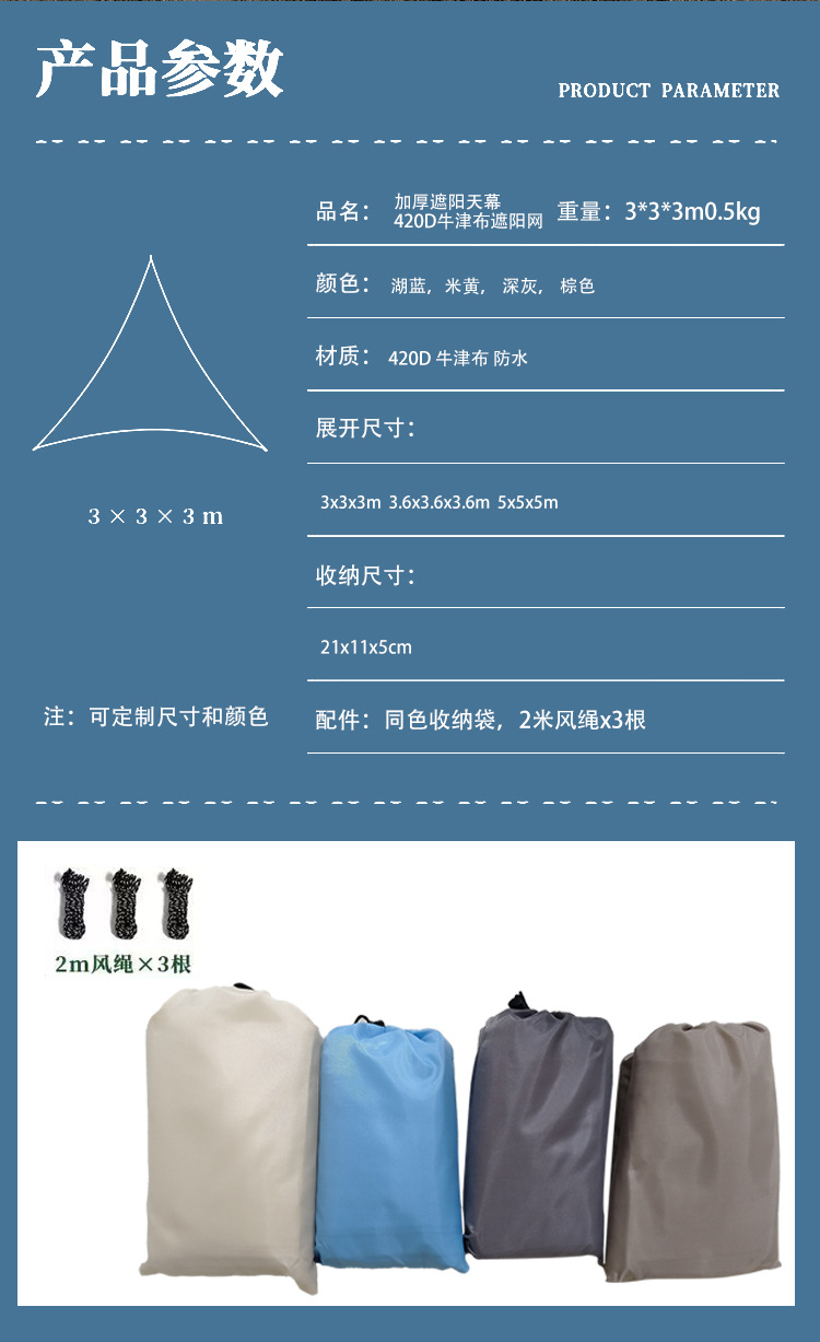 야외 다기능 삼각형 캐노피, 방수, 발수, 자외선 차단, 방풍 및 차양 420D 캠핑 휴대용 태양 가리개